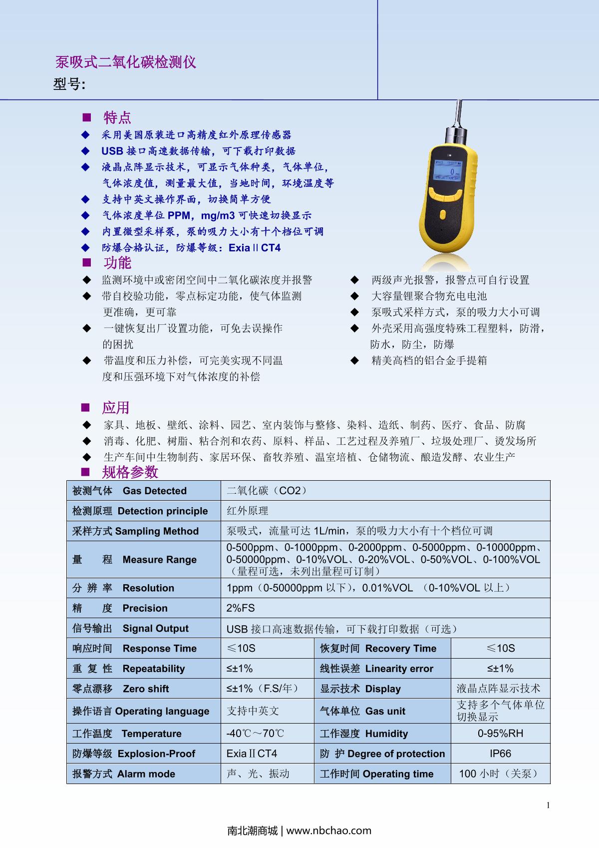 Unitec SKY2000-CO2(0-5000ppm) Pump suction carbon dioxide Detector brochure