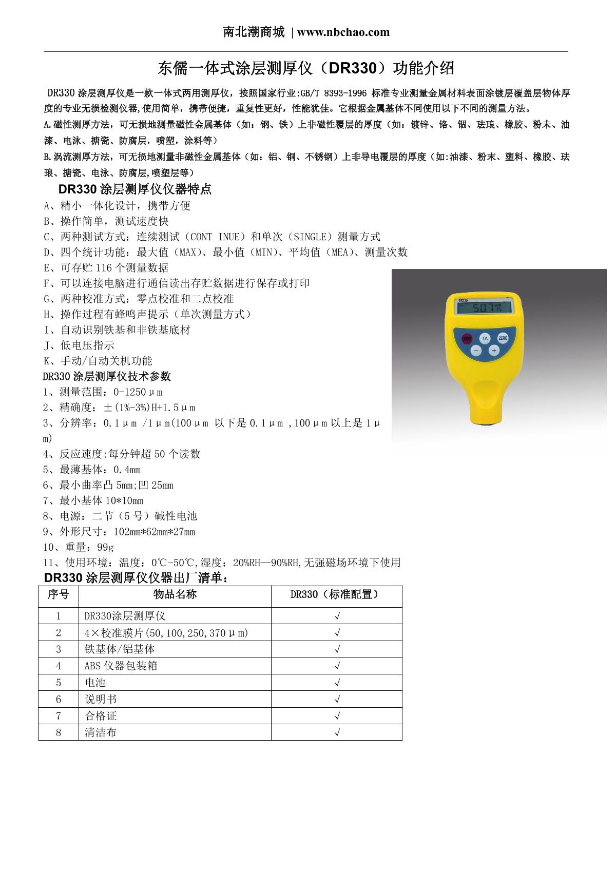 DONGRU DR330 Coating Thickness Gauge measurement of metal surface platingsMagnetic Induction + eddy Current0 ~ 1250µm±3%¥1800.0SE -