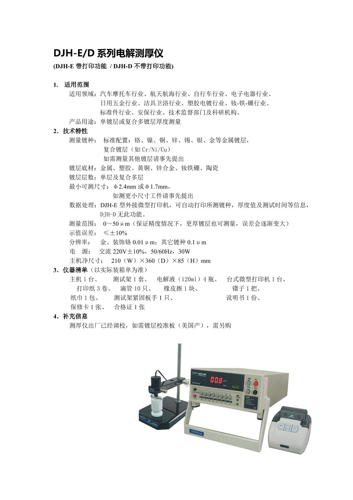 COATTEST INSTRUMENT DJH-D Electrolytic Thickness Gauge brochure