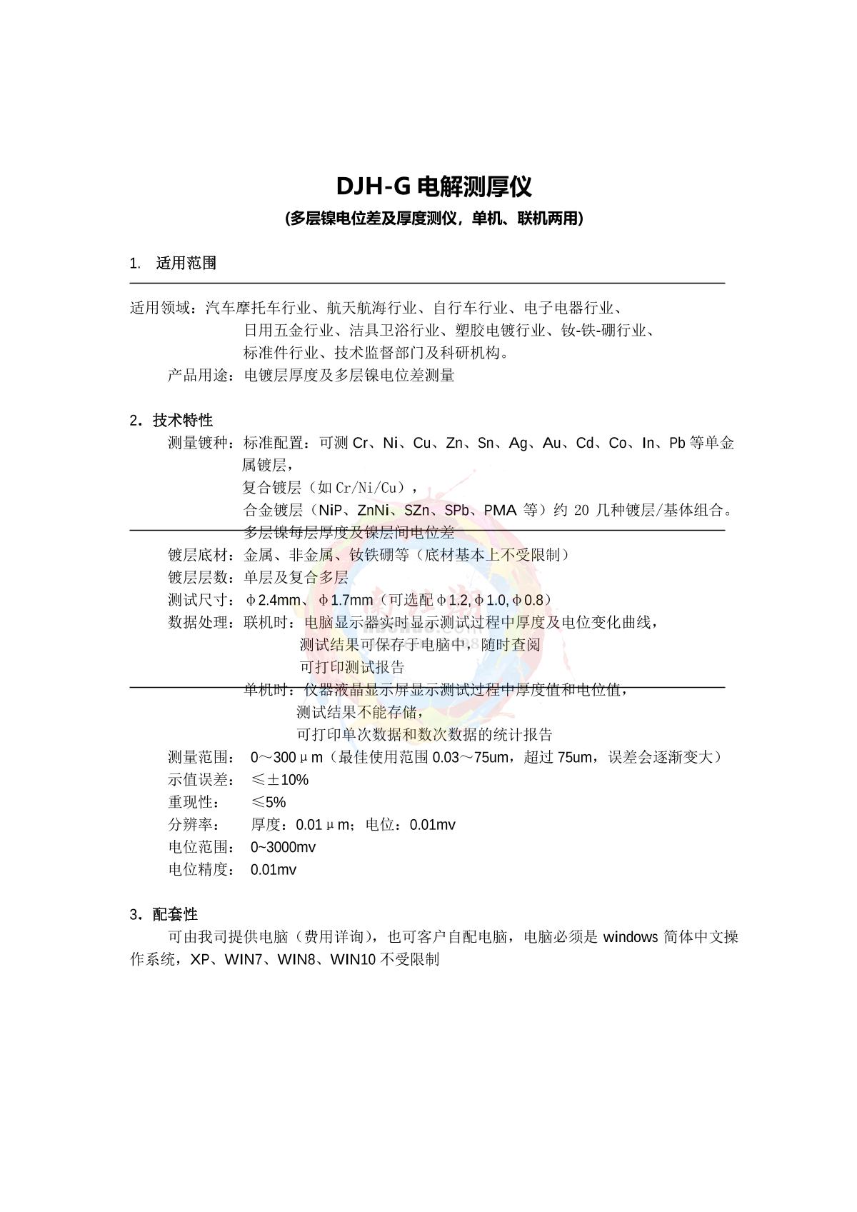 COATTEST INSTRUMENT DJH-G(STEP) Electrolytic Thickness Gauge brochure