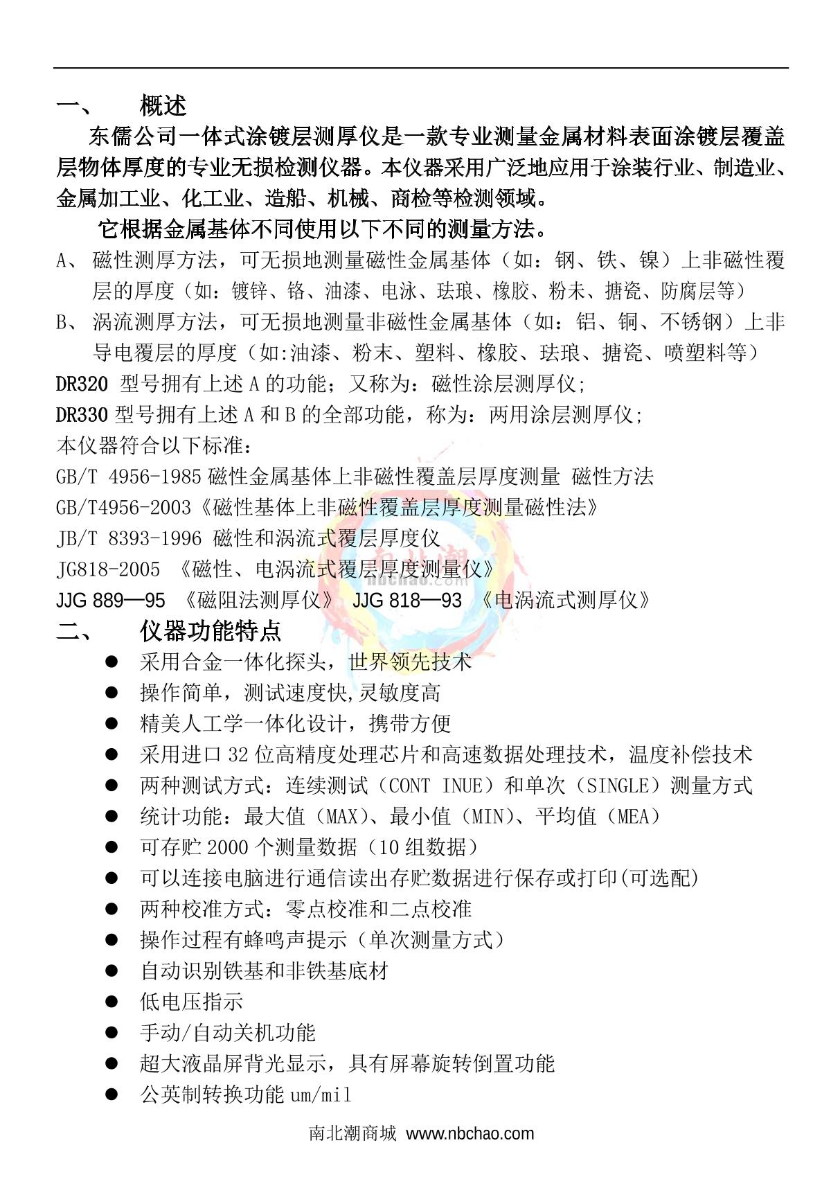 DongRu DR320 Coating Thickness Gauge Manual,OI