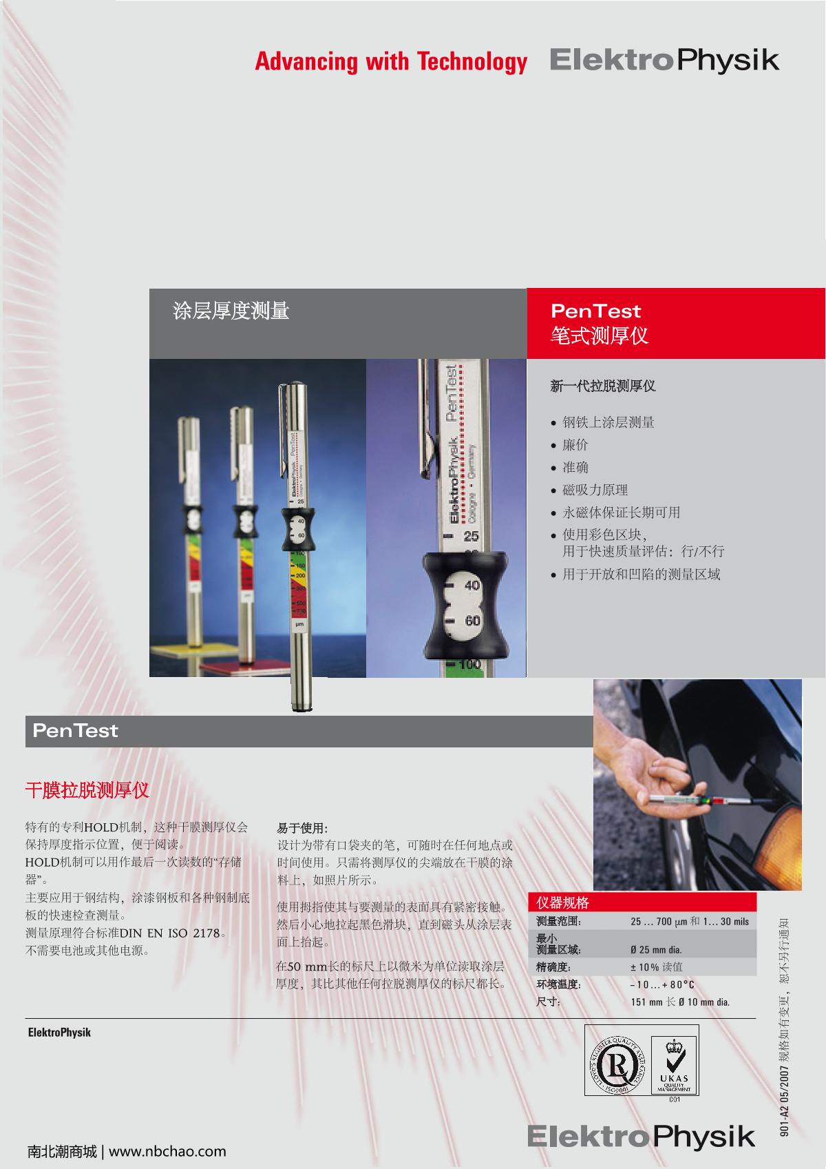 ElektroPhysik PenTest Pen coating Thickness Gauge brochure