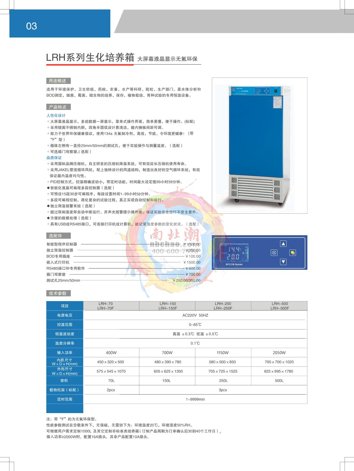 HuiTai LRH-1000F biochemistry cultivating box brochure