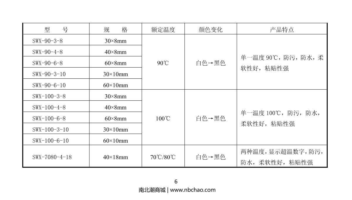 CHANGLONG BCW3-80 reflective discoloration sticker, size 25 × 40mm temperature 80 ℃Irreversible1 grid80℃¥40.0SE -