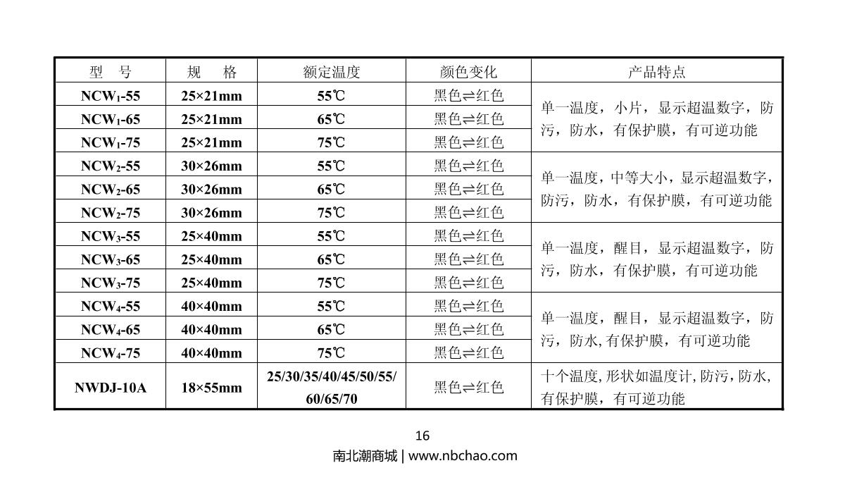 CHANGLONG NCW4-65 reversible temperature measuring patch, temperature 65 ℃ specification 40x40mmreversible1 grid65℃¥55.0SE -