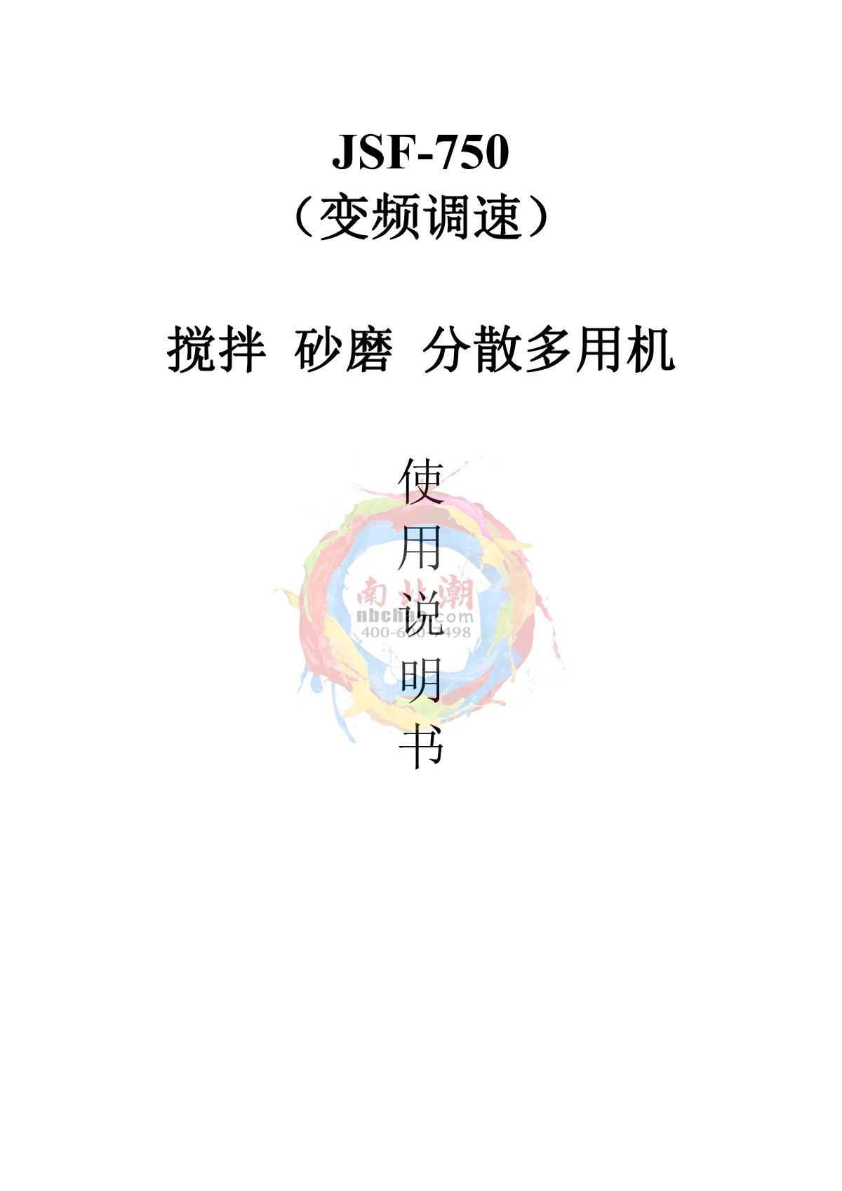 - 9Pushen JSF-750 Stirring and dispersing machine Manual