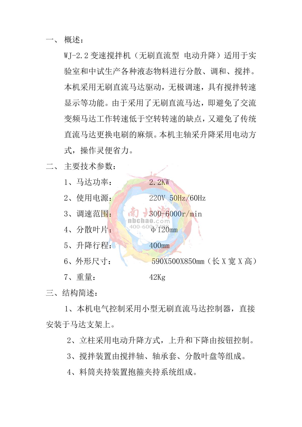 - 10Pushen WJ-2.2 (Taiwan Electric Motor) Stirring and dispersing multipurpose machine Manual