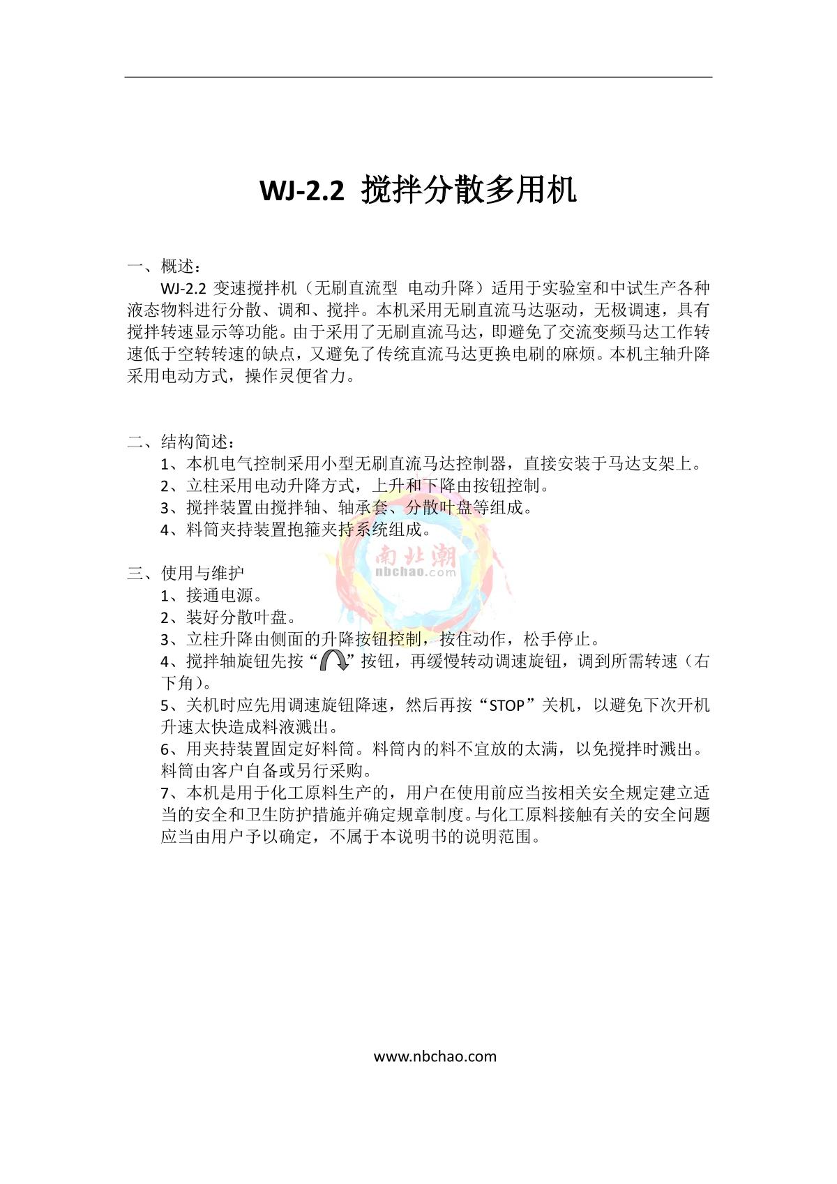 Pushen WJ-2.2 Stirring and dispersing multipurpose machine Manual,OI