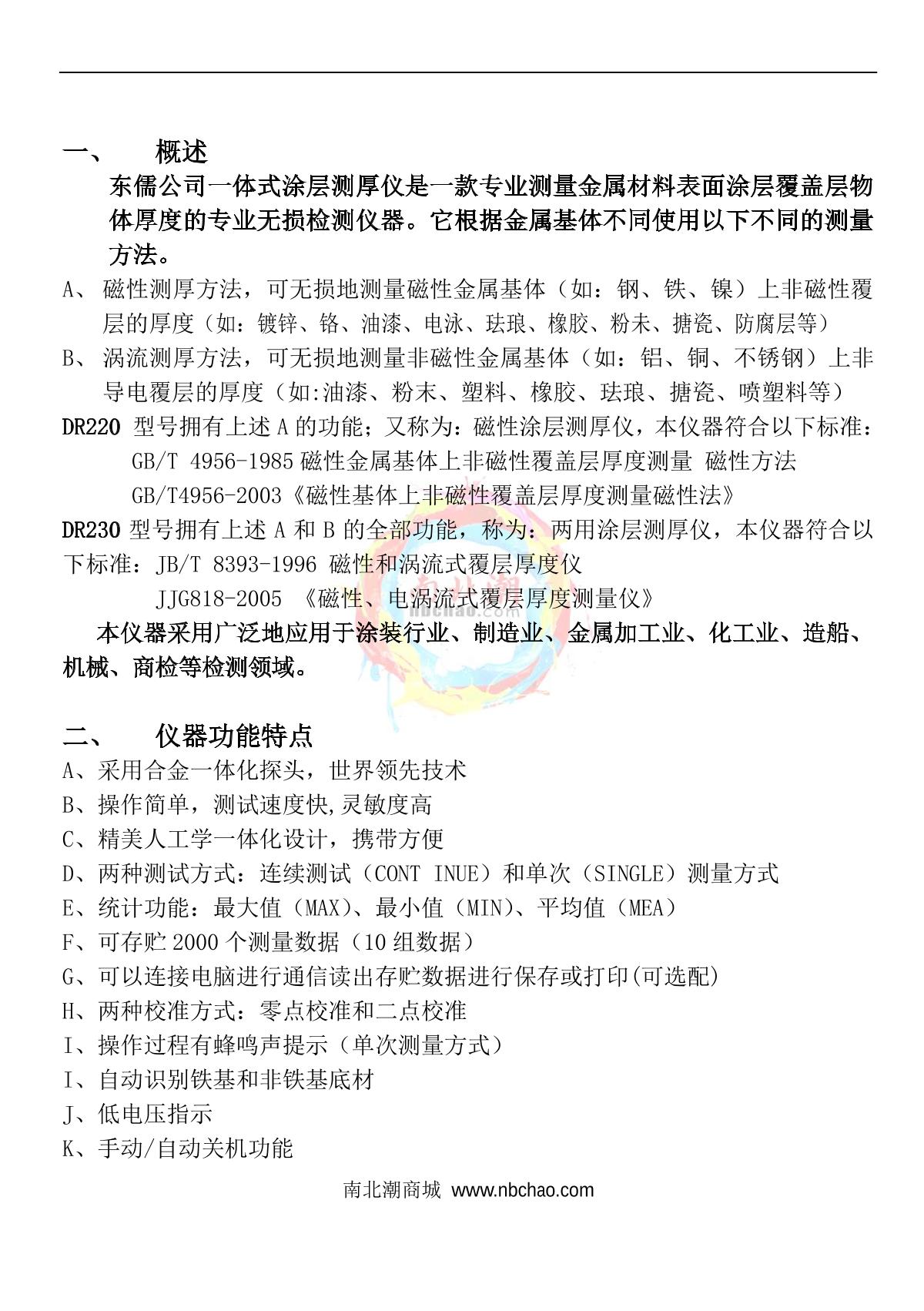 DongRu DR220 (upgraded version) Coating Thickness Gauge Manual,OI