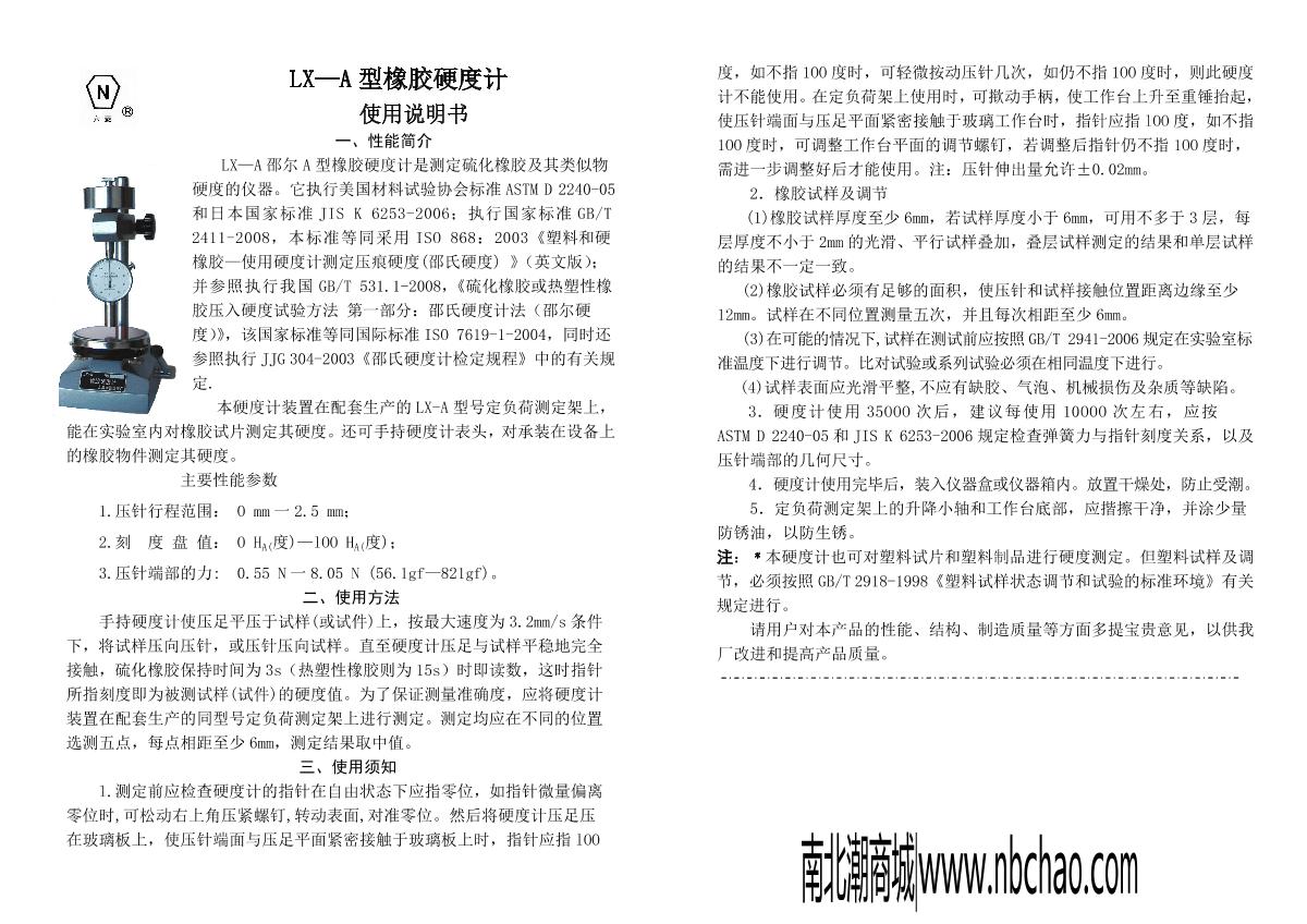 LiuLing LX-A (complete machine) Shore rubber hardness gauge Manual,OI