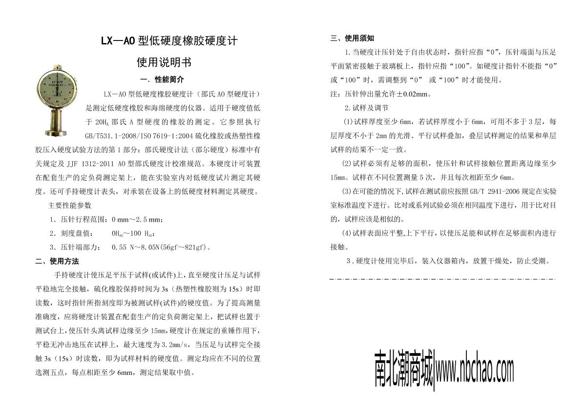 LiuLing LX-AO (complete machine) Hardness rubber hardness gauge Manual,OI