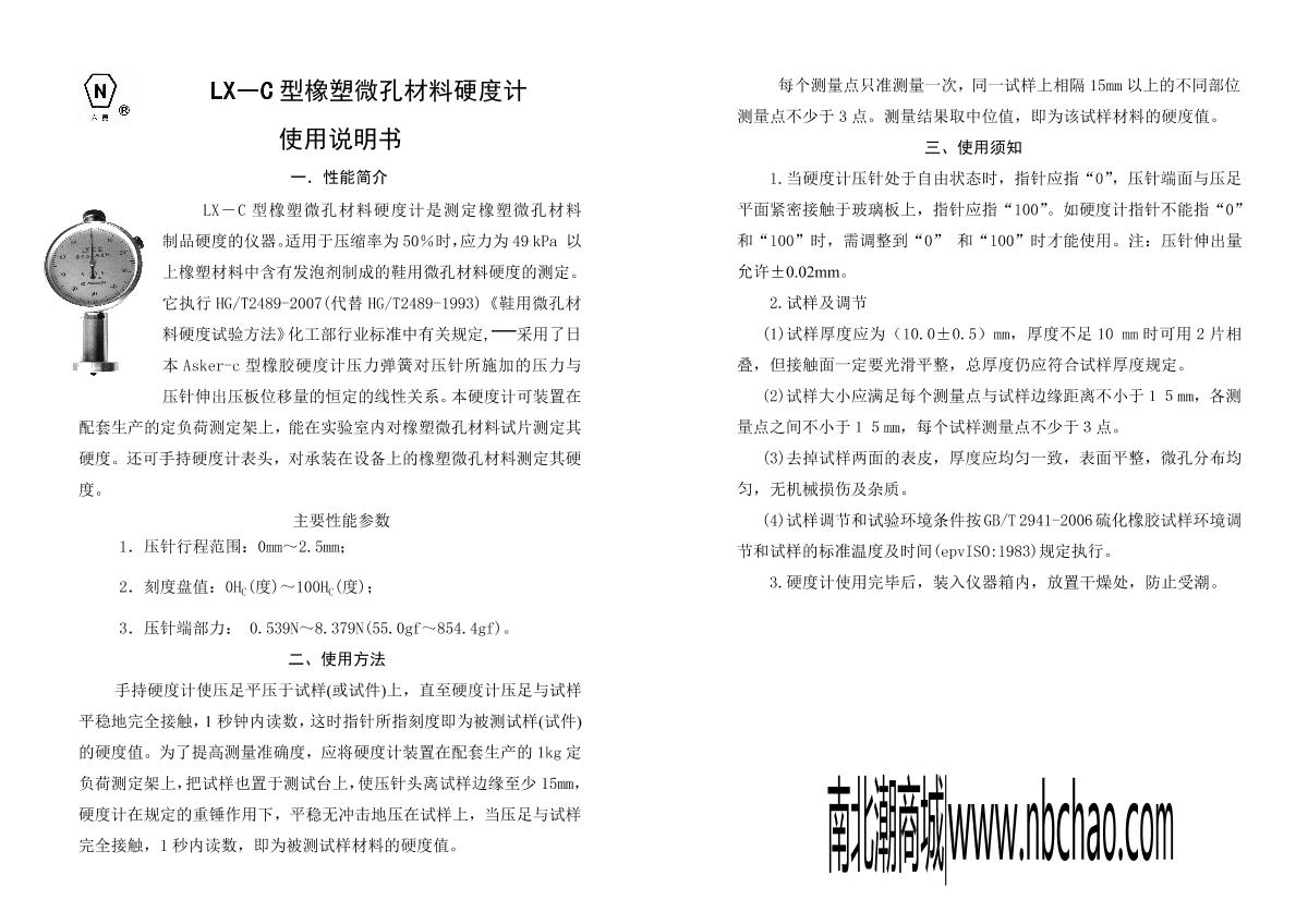 - 4HBO LX-C Rubber and plastic microporous material Hardness Gauge Manual