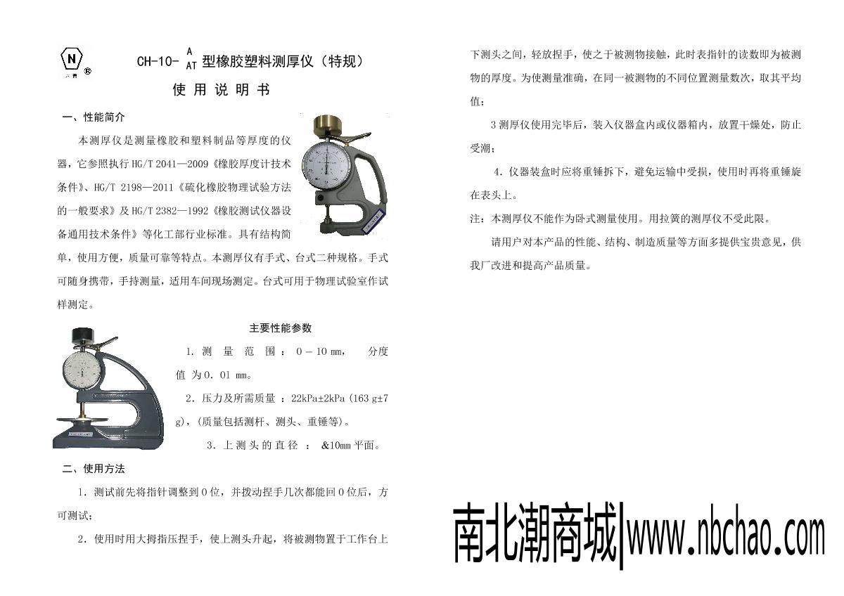 - 10LiuLing CH-10-A (Large) Hand Large Span Rubber Thickness Gauge Manual