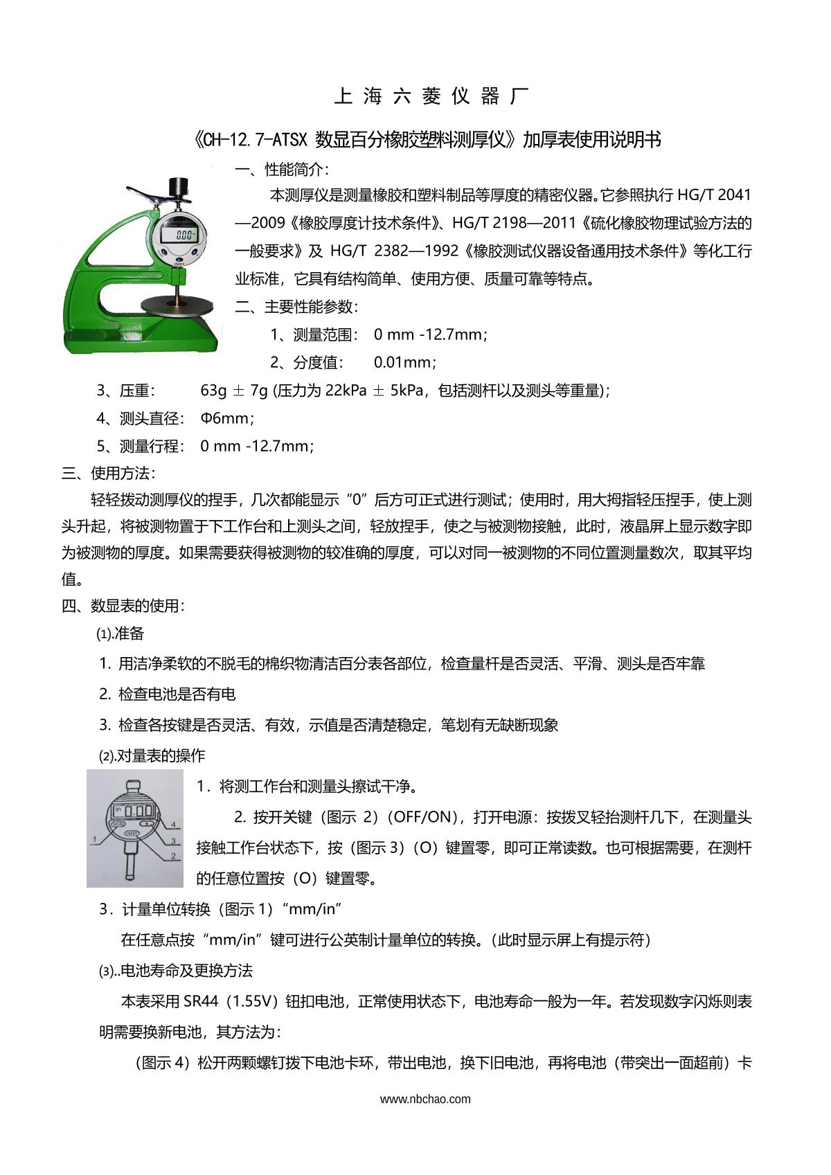 LiuLing CH-12.7-ATSX Benchtop digital rubber thickness gauge Manual,OI