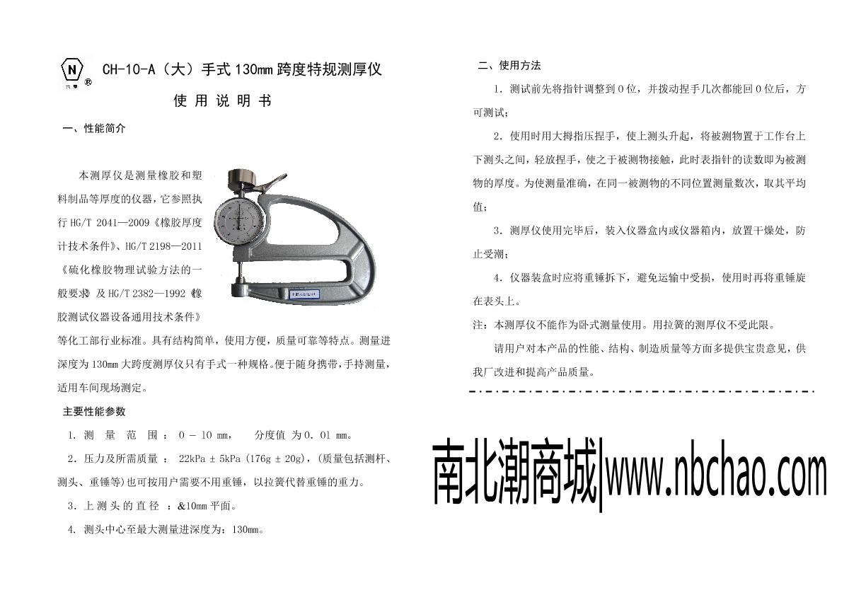 - 10LiuLing CH-10-A Hand rubber thickness gauge Manual