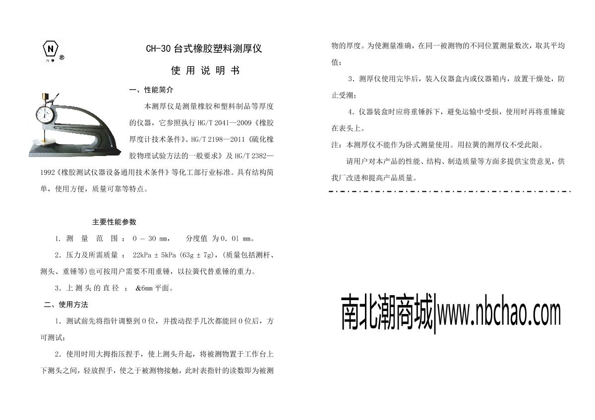 LiuLing CH-30 Large Span Benchtop Rubber Thickness Gauge Manual,OI