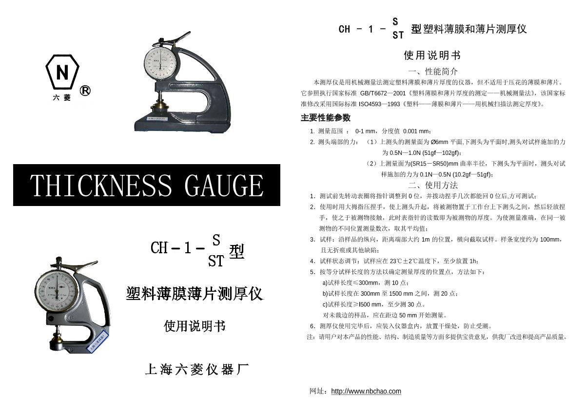 - 8LiuLing CH-1-S Plastic film sheet hand thickness gauge Manual