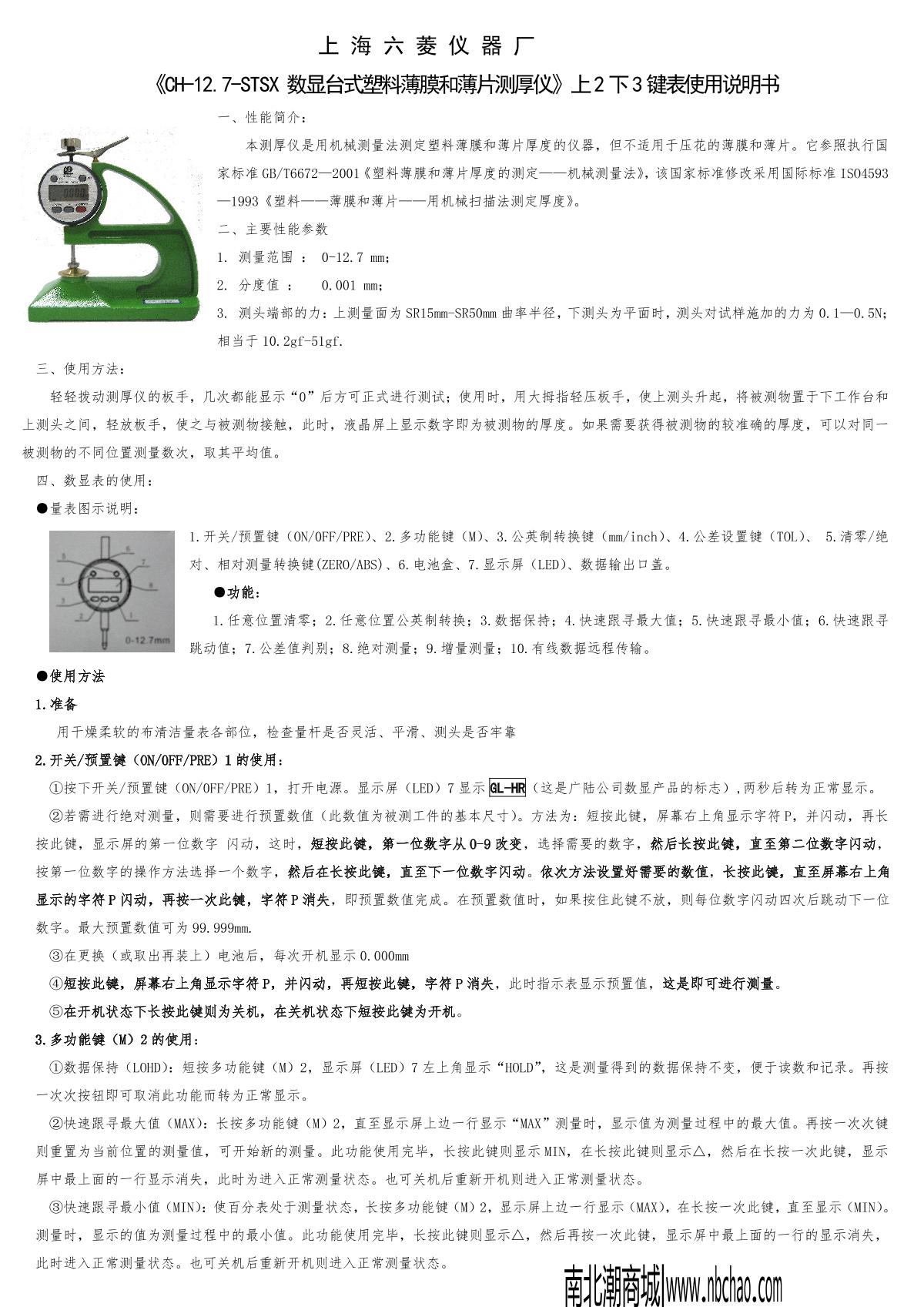 LiuLing CH-12.7-STSX Digital Plastic Film Benchtop Thickness Gauge Manual,OI