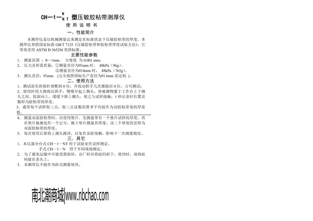 LiuLing CH-1-N Pressure sensitive adhesive tape thickness gauge Manual,OI