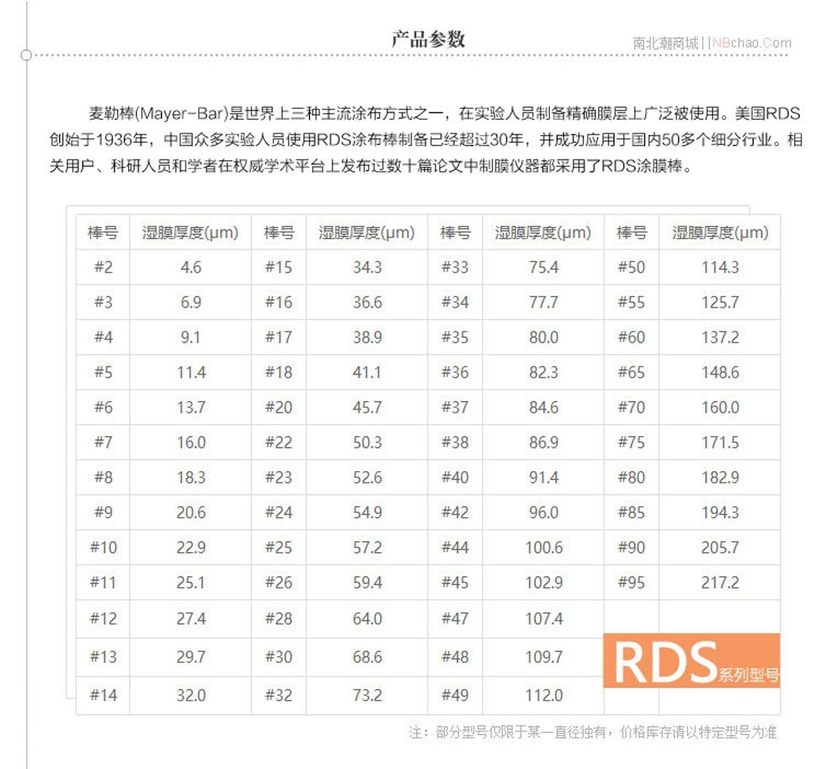 RDS 18 #1/4 "stainless steel scraper rod film thickness 41.1μm rod diameter 6.35mmformed41.1μm6.35mm¥540.0SE -