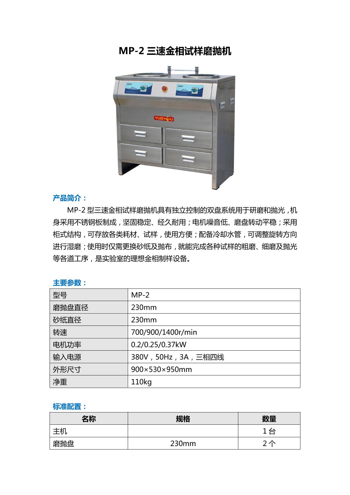YuZhou MP-2 Metallographic polish-grinding machine brochure