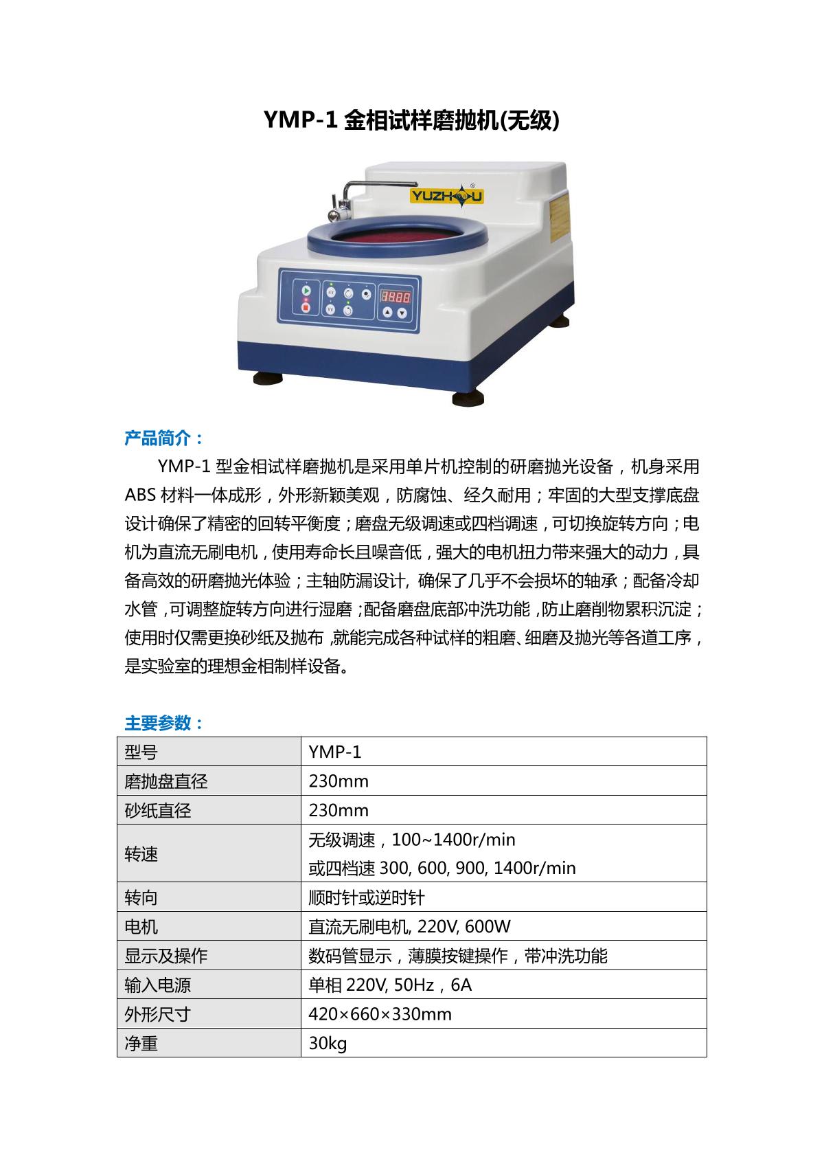 YuZhou YMP-1 Metallographic polish-grinding machine (stepless) brochure