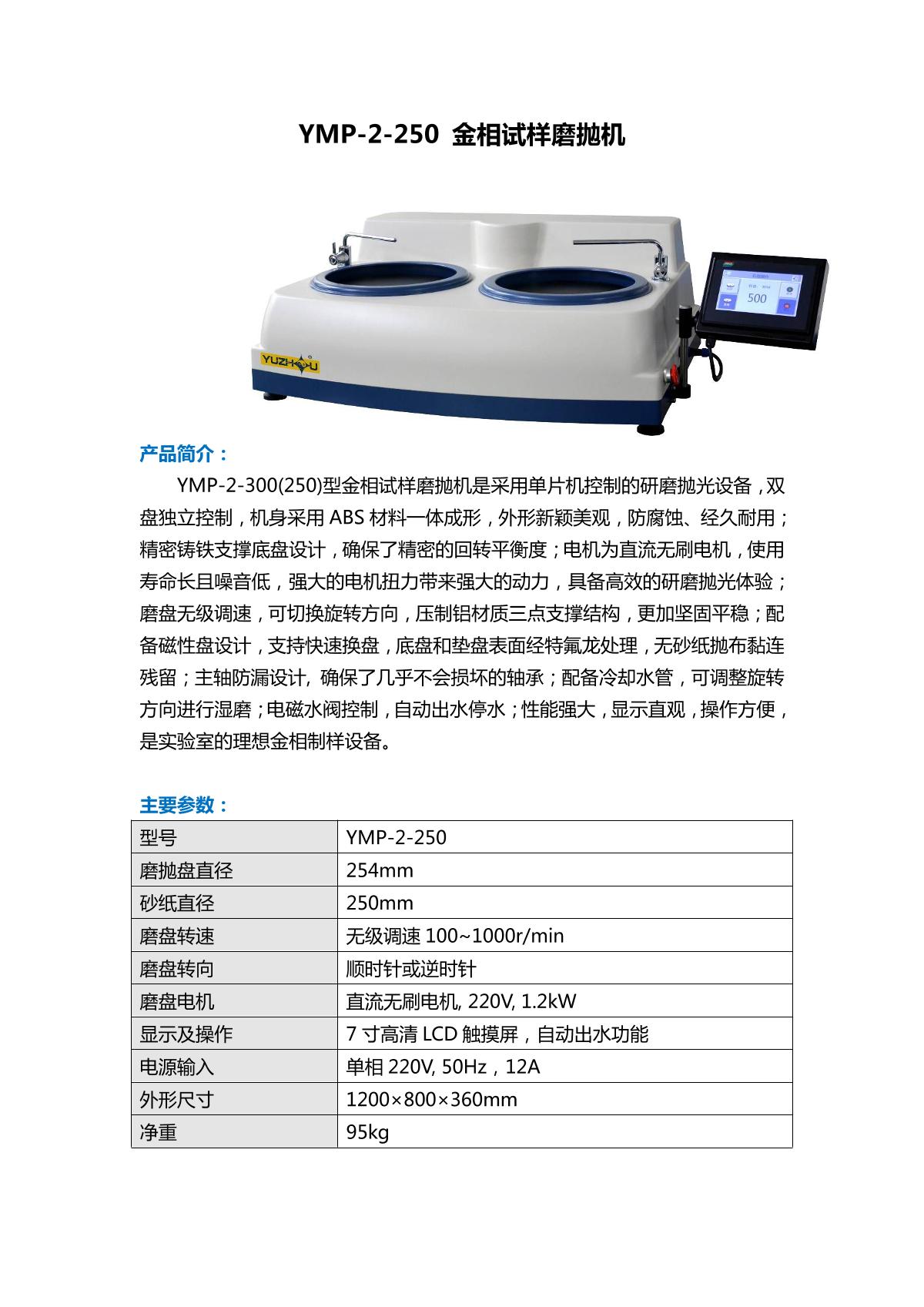 - 5YuZhou YMP-2-250 Metallographic polish-grinding machine brochure