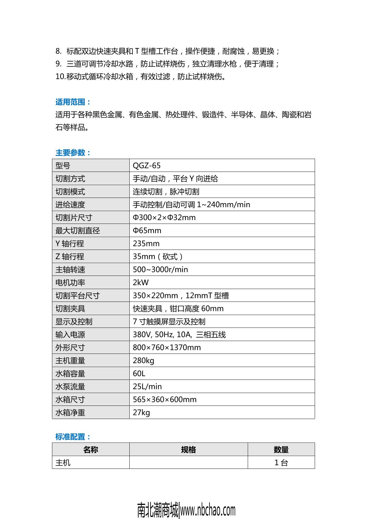 - 8YuZhou QGZ-65 Automatic metallographic sample cutting machine brochure