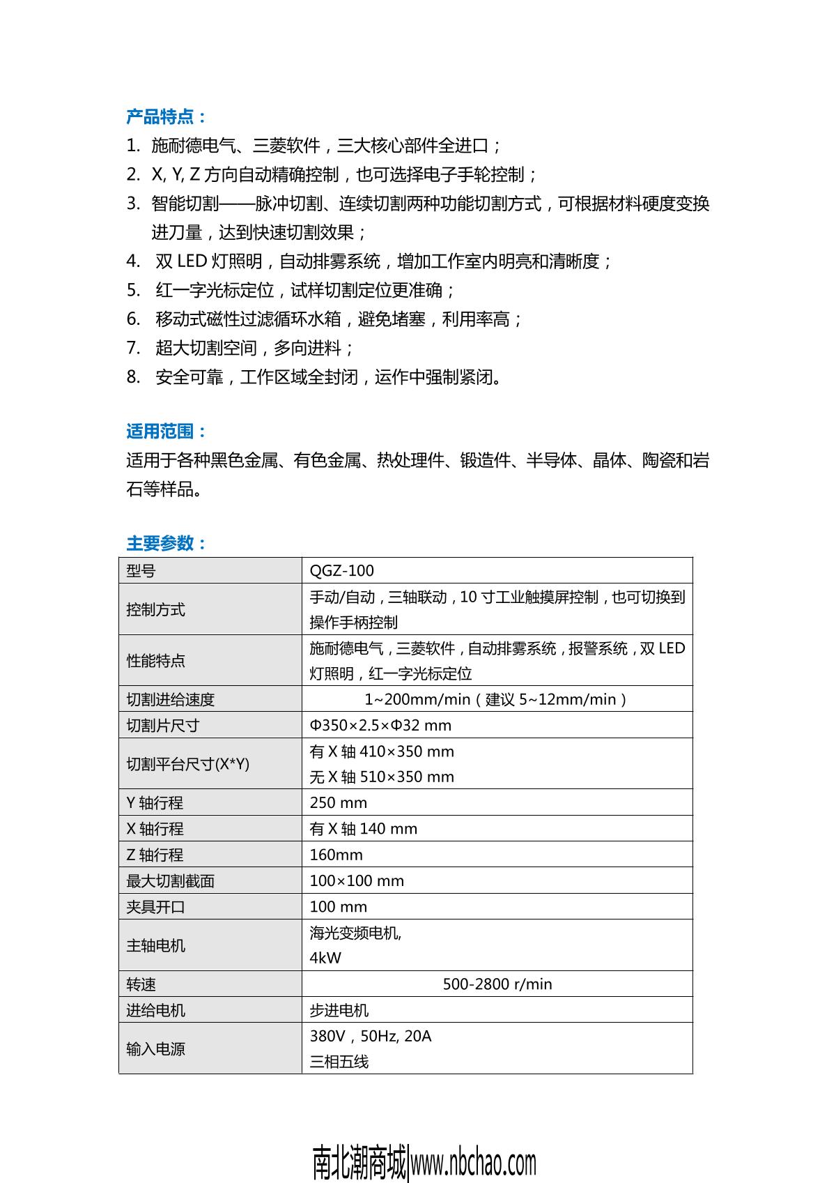 - 9YuZhou QG-3 Metallographic sample cutting machine brochure