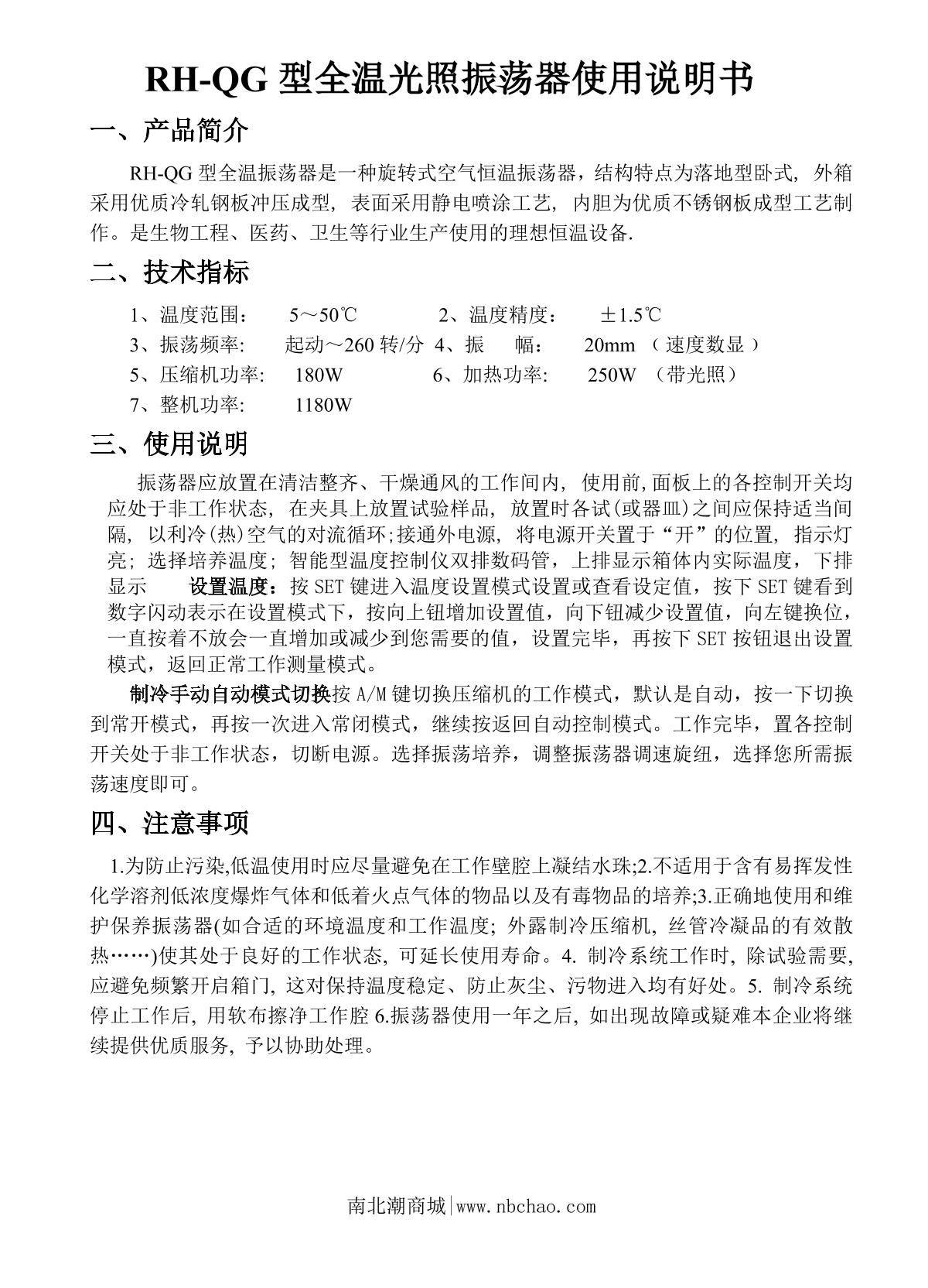RONGHUA RH-QG Full Temperature Light Shaker Manual,OI