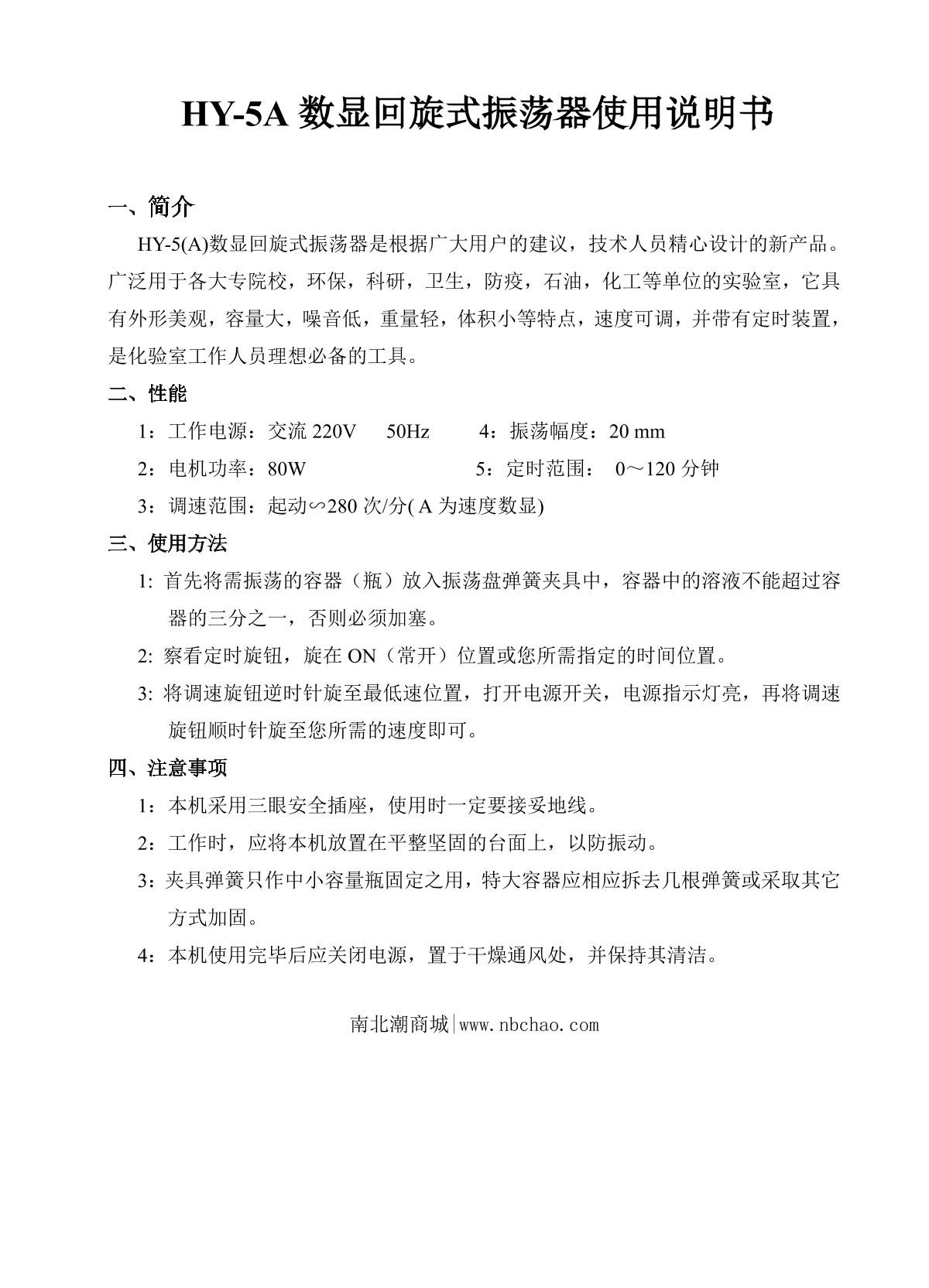 - 7RONGHUA HY-5A Digital Swing Shaker Manual