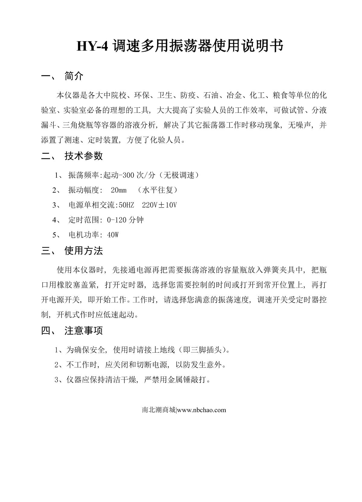 RONGHUA HY-4 Speed Control Shaker Manual,OI