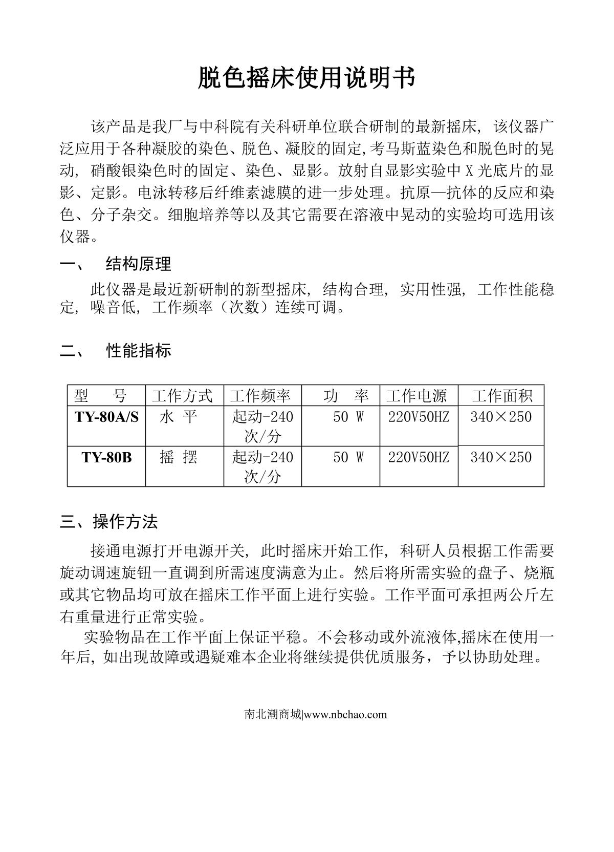 RONGHUA TY-80B Decolorized Shaker Manual,OI