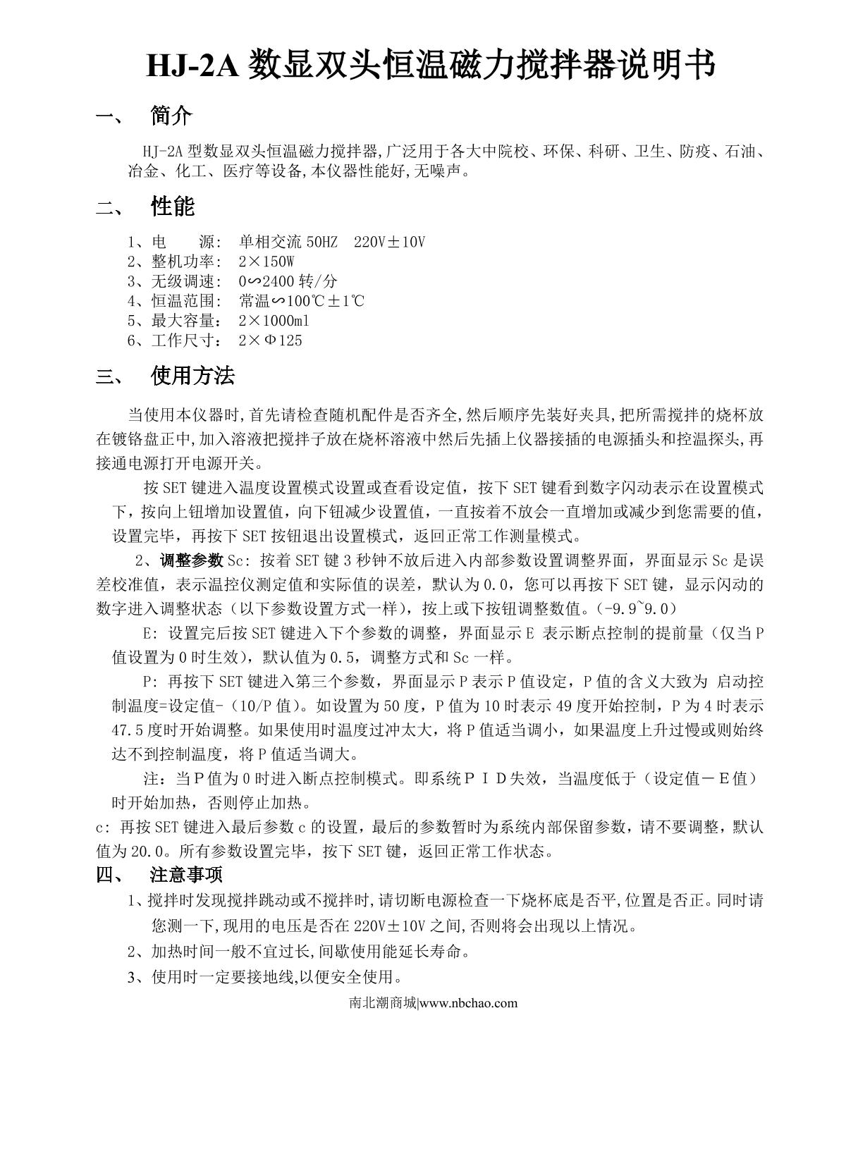 RONGHUA HJ-2A Digital double head thermostatic Magnetic Stirrer Manual,OI