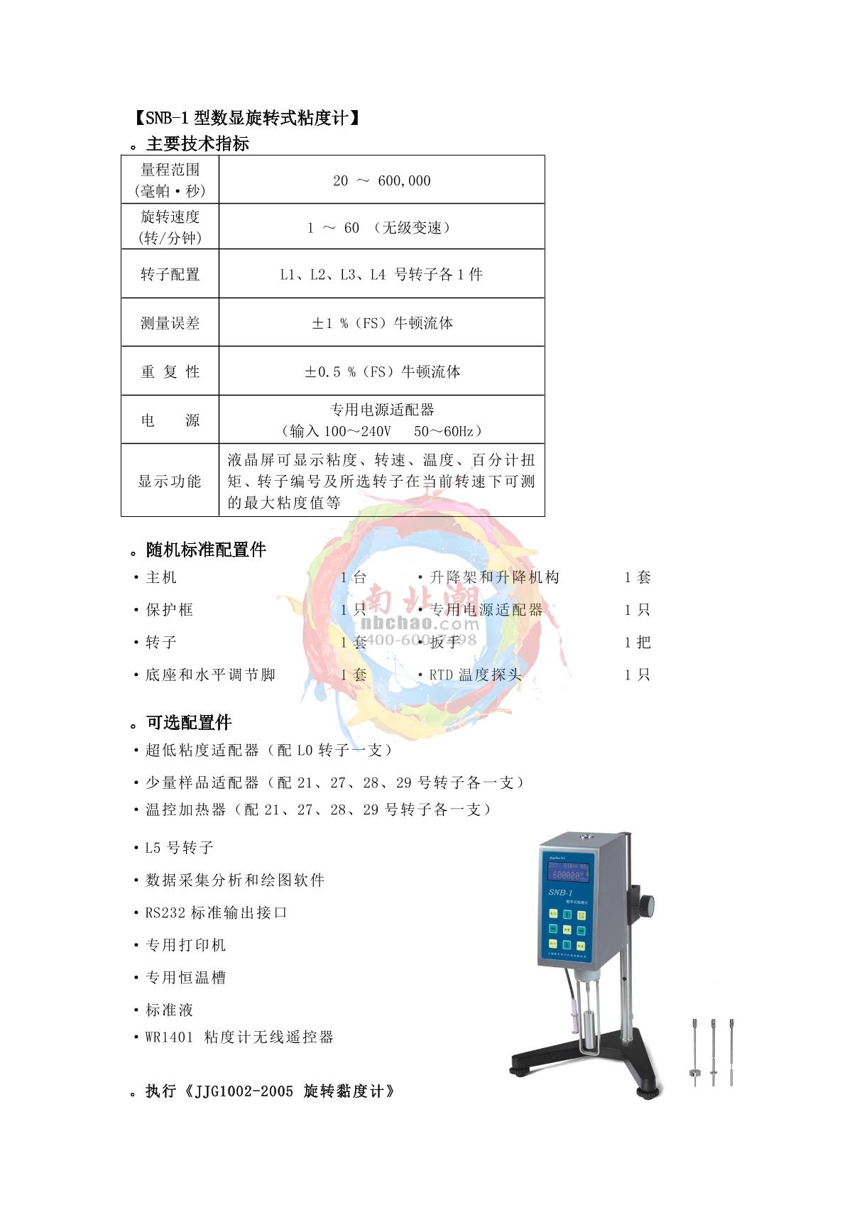 JingTian SNB-1 Digital Rotational Viscometer brochure