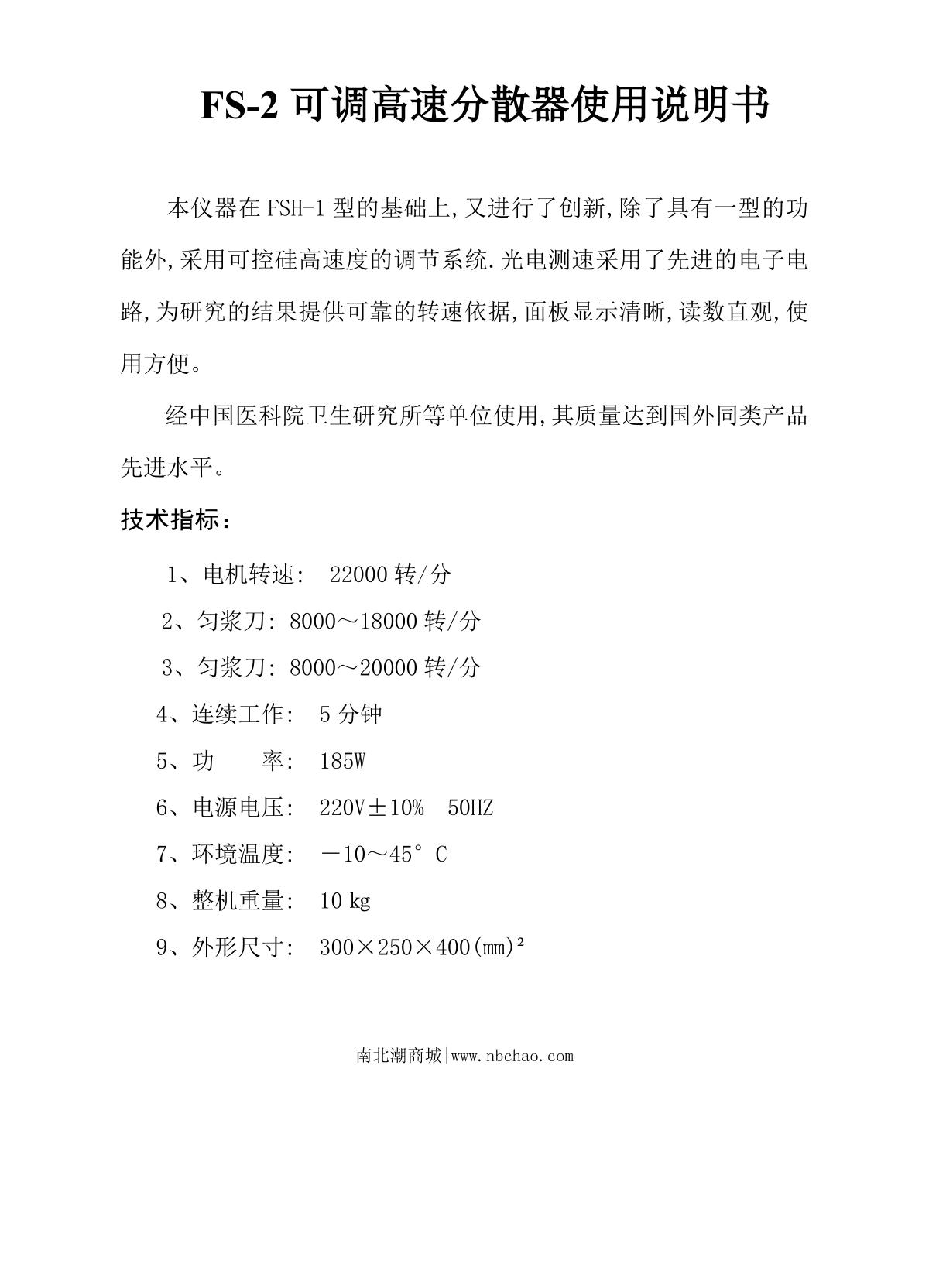 RONGHUA FS-2 Adjustable high speed disperser Manual,OI