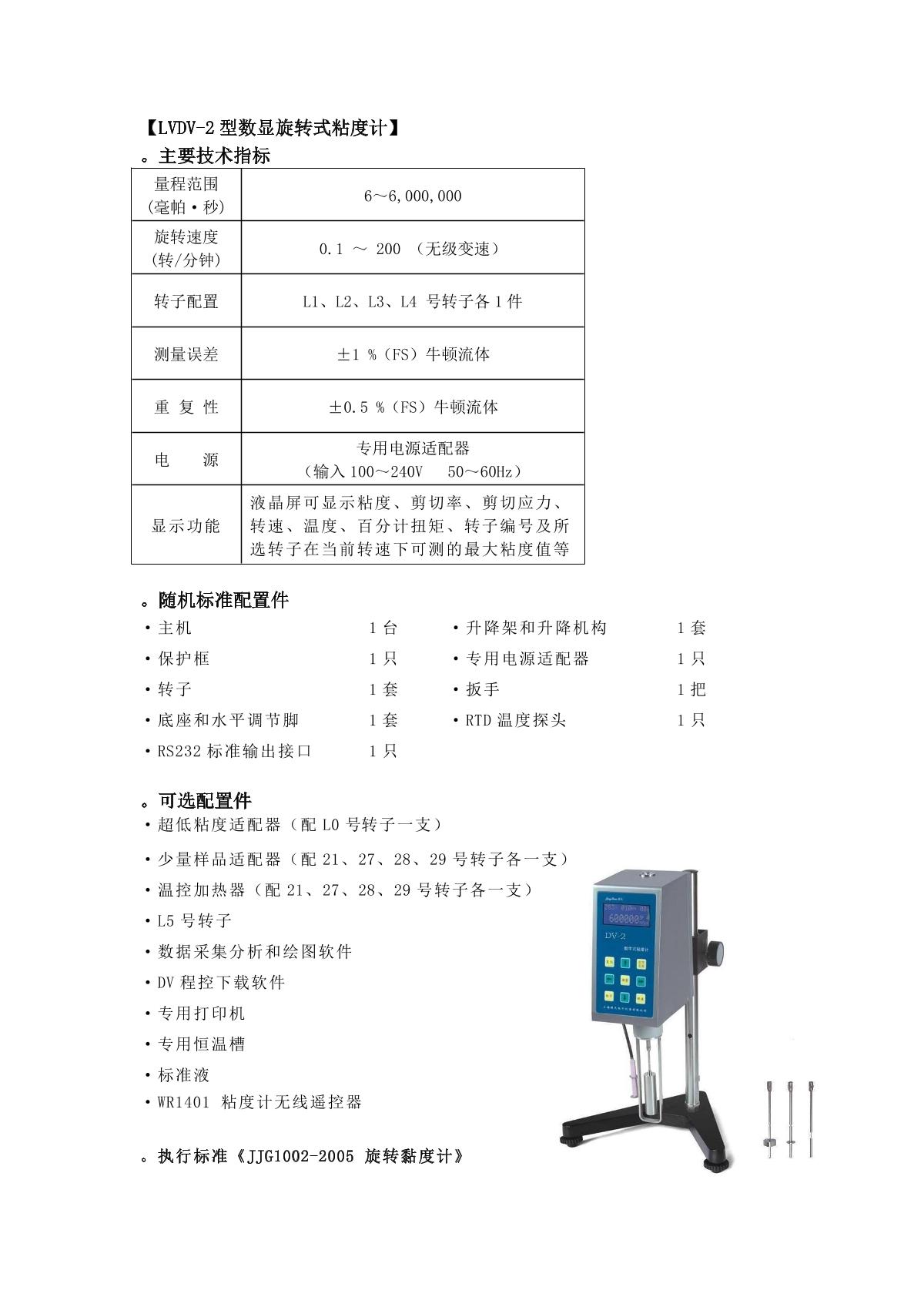 JingTian LVDV-2 Digital Rotational Viscometer brochure