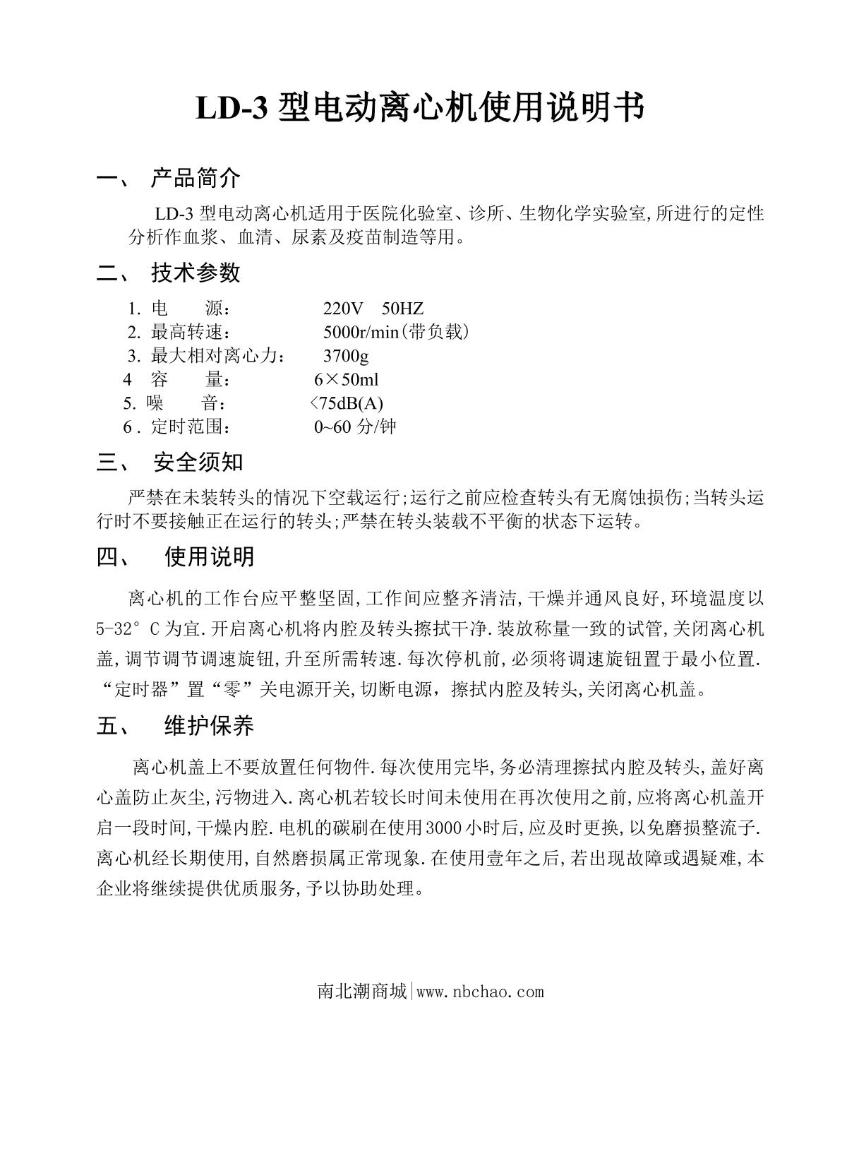 RONGHUA LD-3 Electric Centrifuge Manual,OI