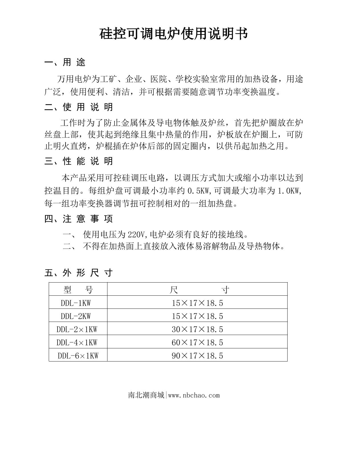 - 2RONGHUA DDL-1KW Silicon controlled adjustable heater Manual