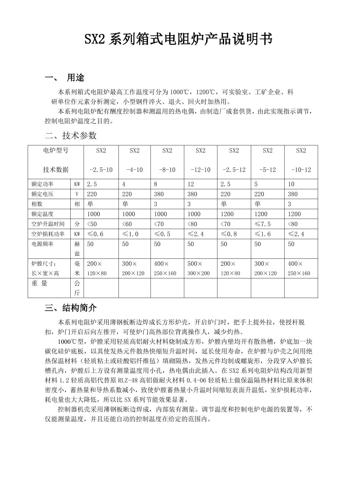 - 3RONGHUA SX2-2.5-12 Box-Type Resistance Furnace Manual