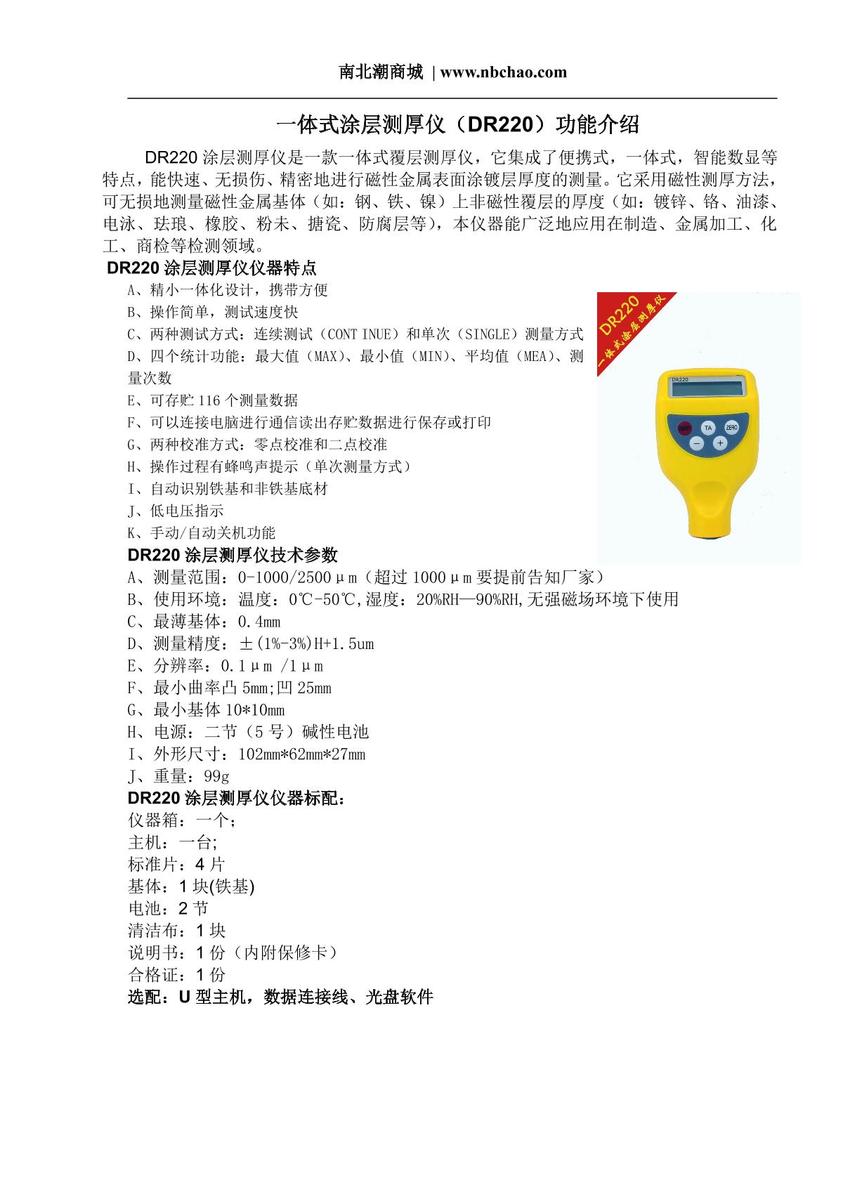 DONGRU DR3000 dual-use Coating Thickness Gauge 0~3000μmMagnetic Induction + eddy Current0 ~ 3000μ m±3%¥1200.0SE -