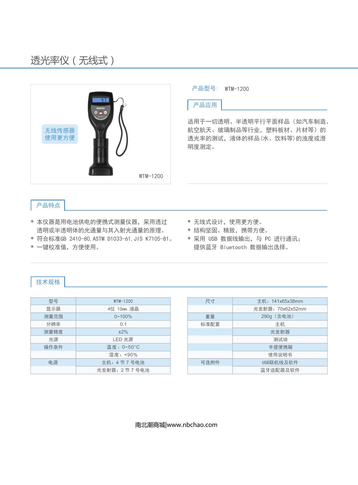 LANDTEK WTM-1200 Transmittance meter (wireless) brochure