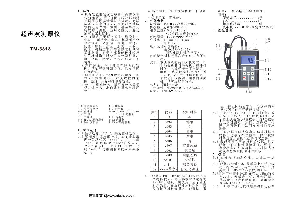 - 4TIME TIME2130(原TT300A) Ultrasonic Thickness Gauge Manual