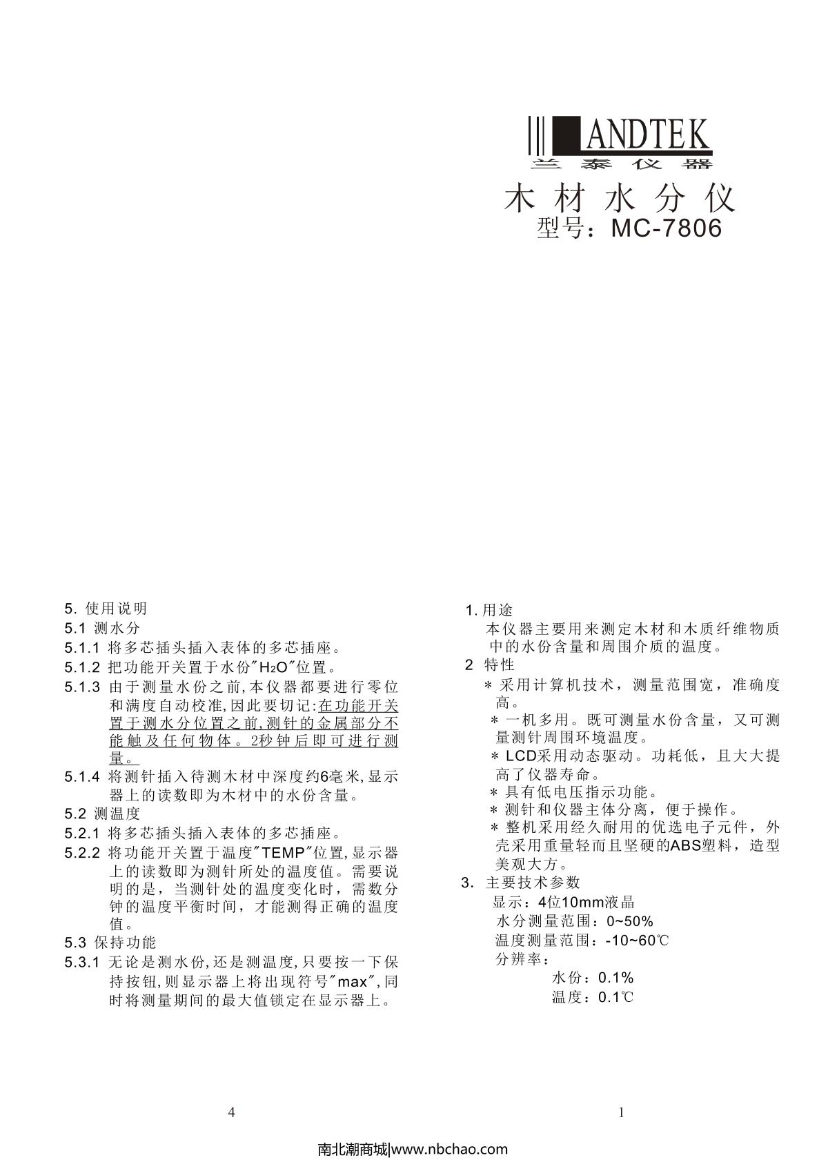LANDTEK MC-7806 Moisture meter (economical) Manual,OI