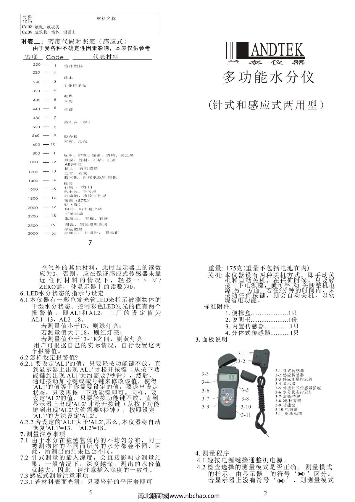 - 3LANDTEK MC-7825PS Moisture meter (dual-use) Manual
