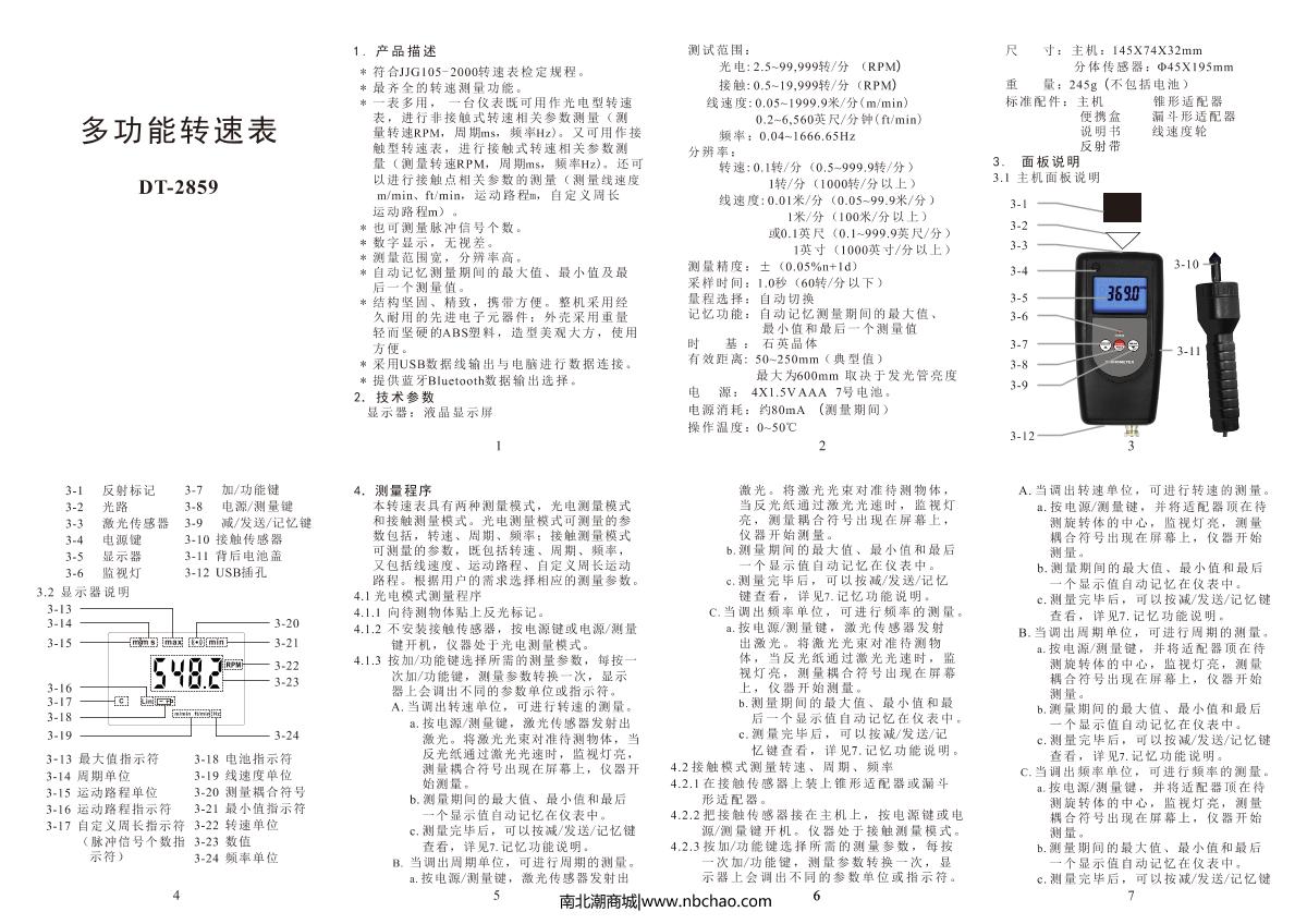 LANDTEK DT-2859 Rotation speed gauge Manual,OI