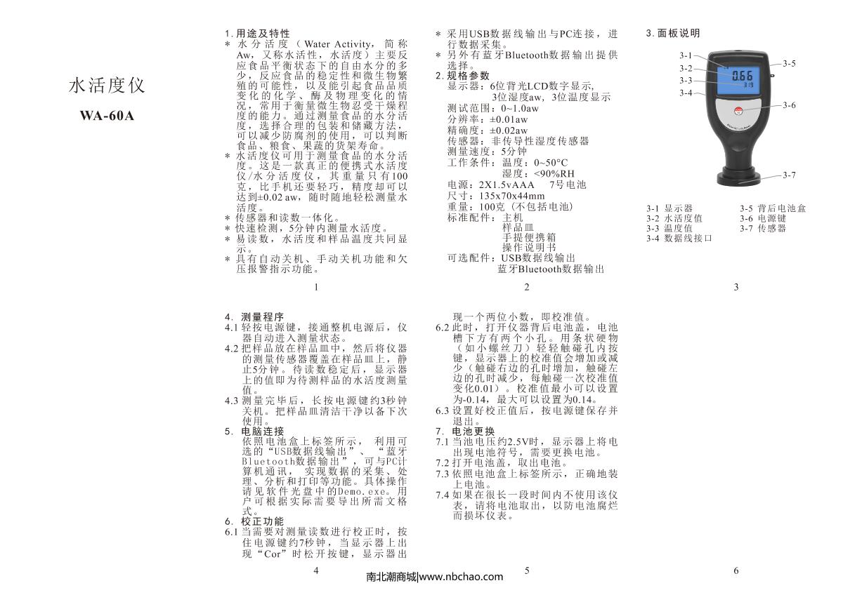 LANDTEK WA-60A Water activity meter Manual,OI