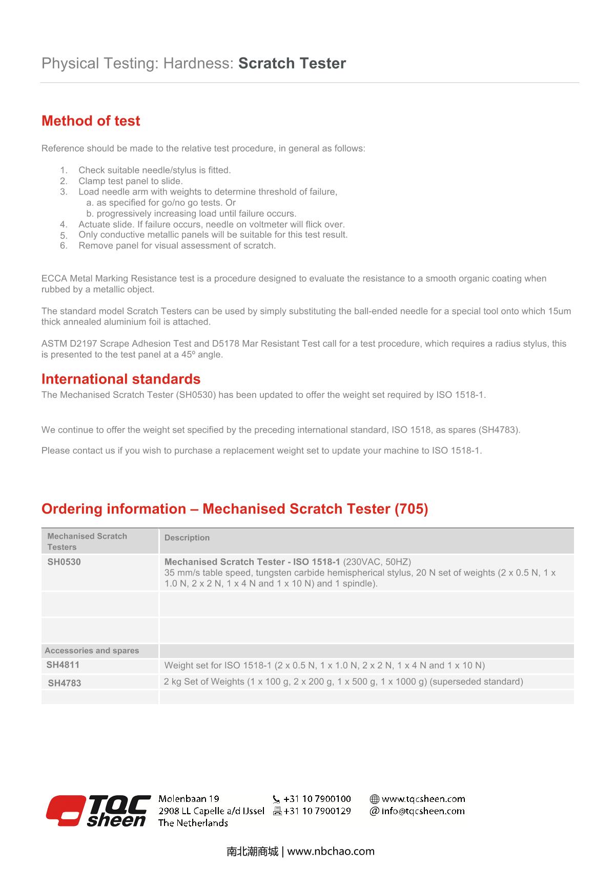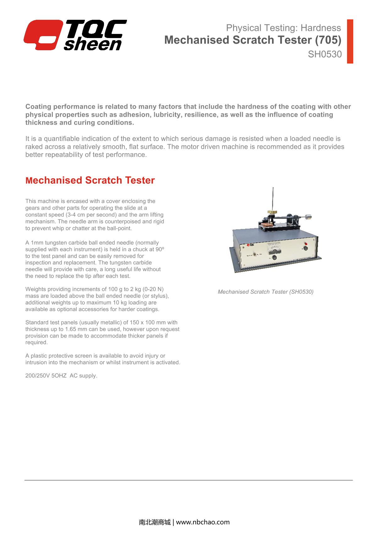 TQC sheen SH0530 Coating surface scratch resistance instrument brochure