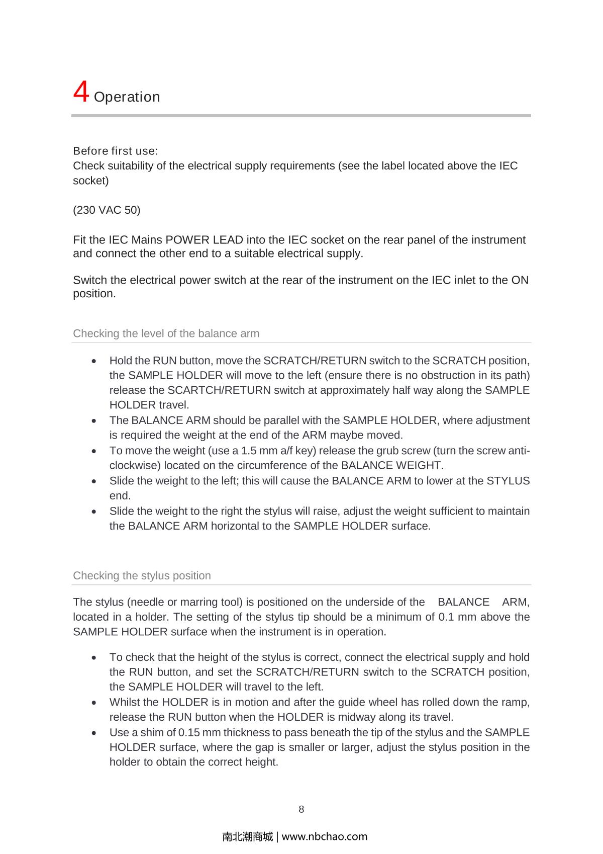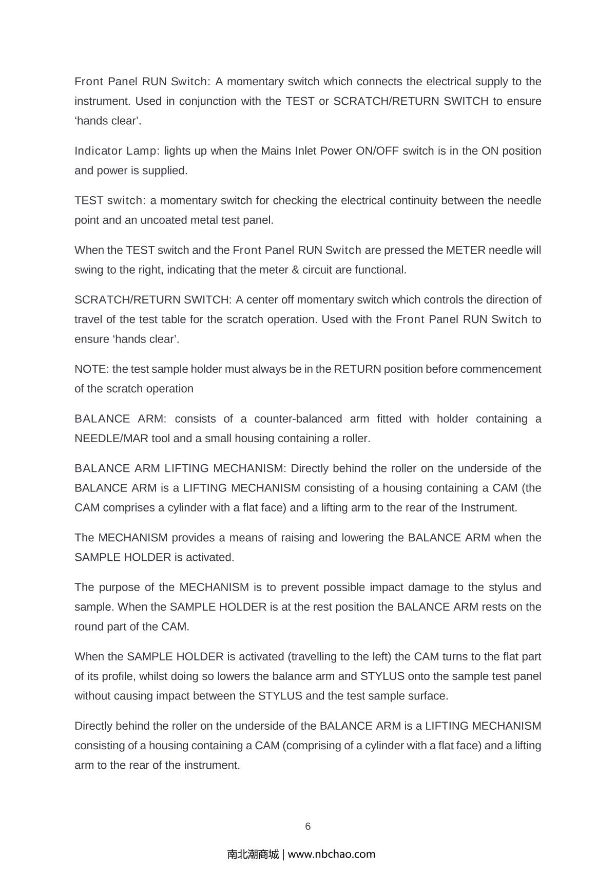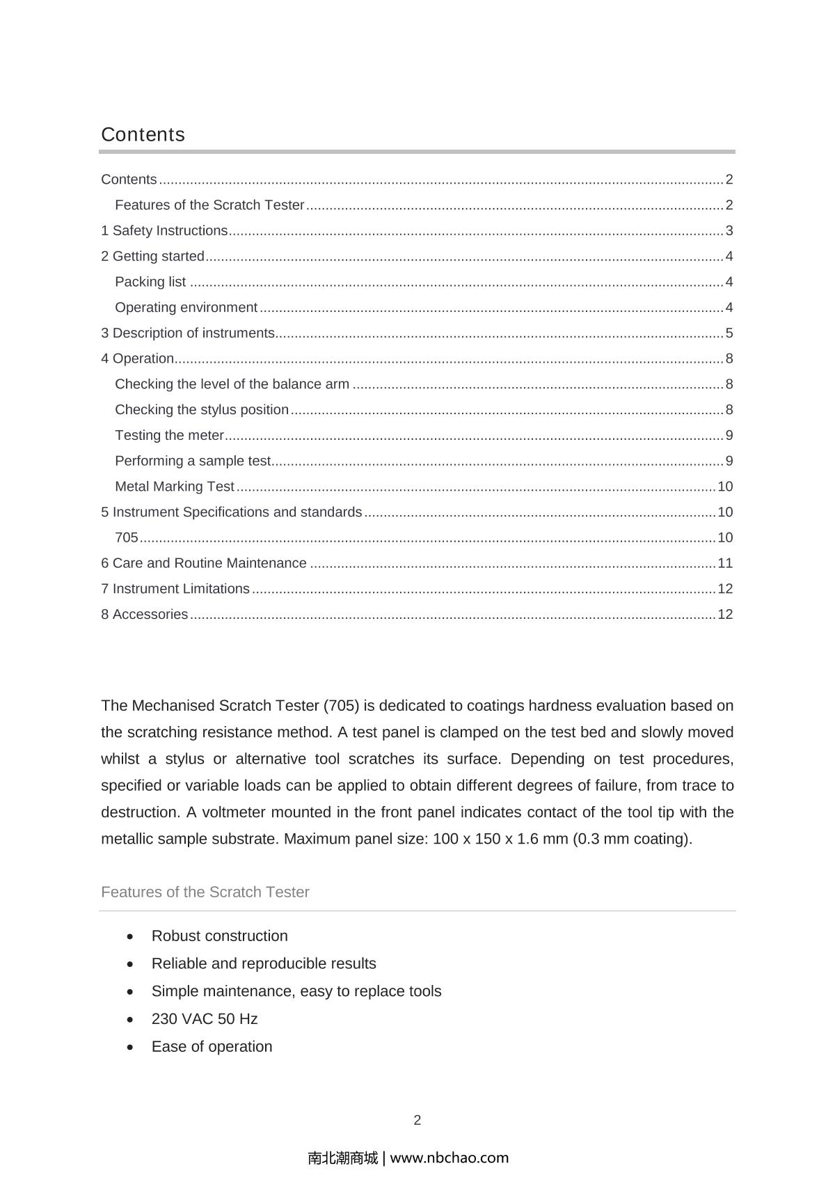 TQC sheen SH0530 Coating surface scratch resistance instrument Manual,OI