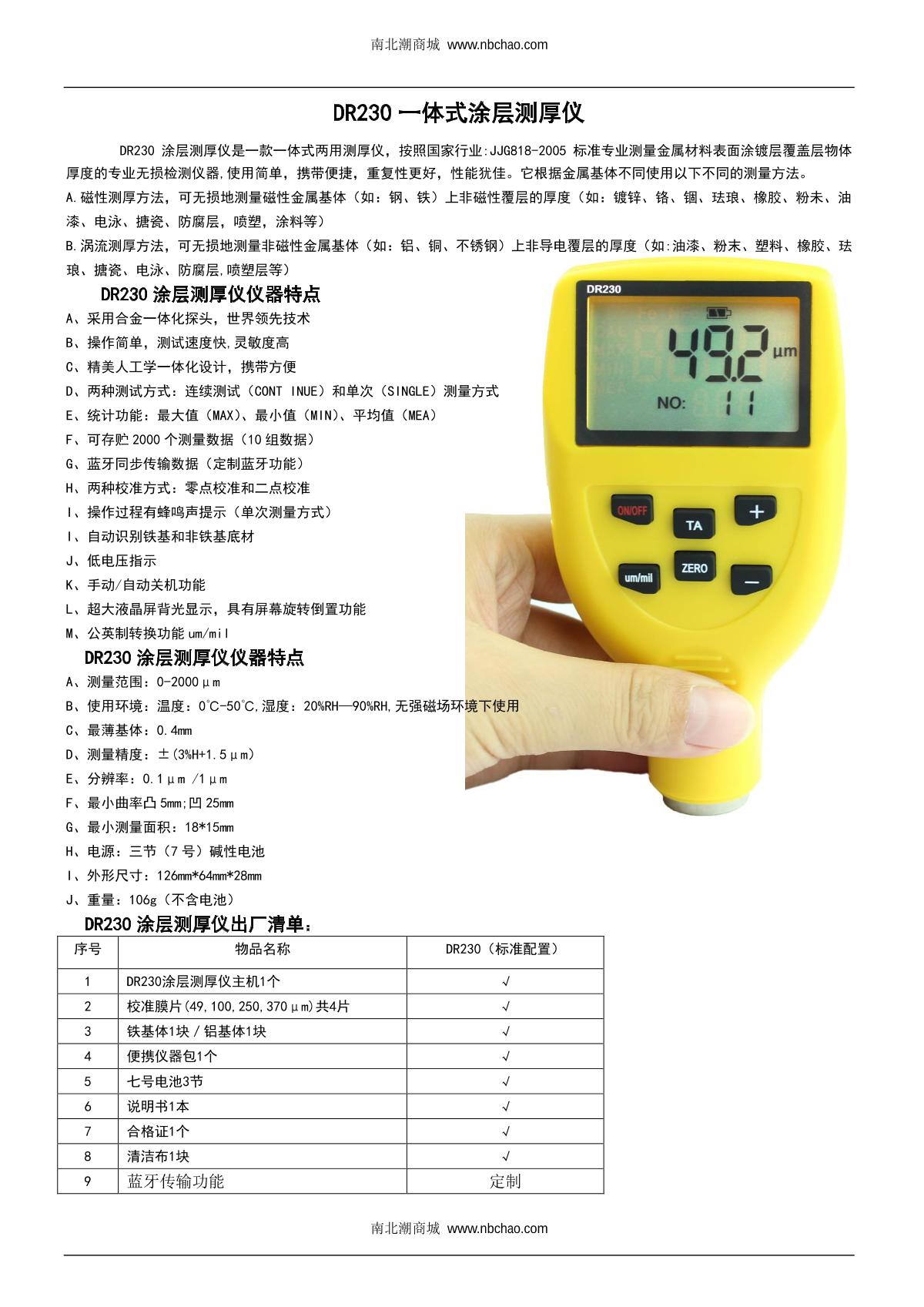 DONGRU DR220 (upgraded version) Integrated Coating Thickness Gauge 0-2000μmMagnetic Induction0 ~ 2000m±3%¥1000.0SE -